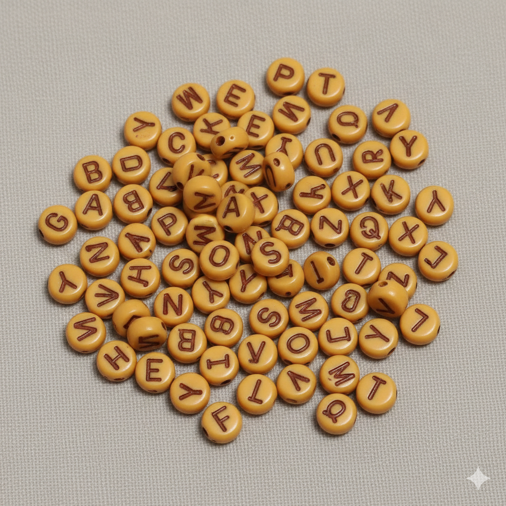 100 gm, 6mm Acrylic Round A to Z Alphabet Letter Beads