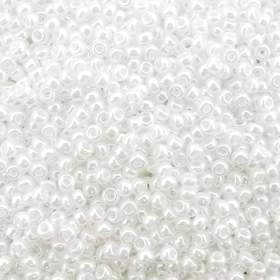 100Gm Glass Seed Beads Ceylon White 8/0