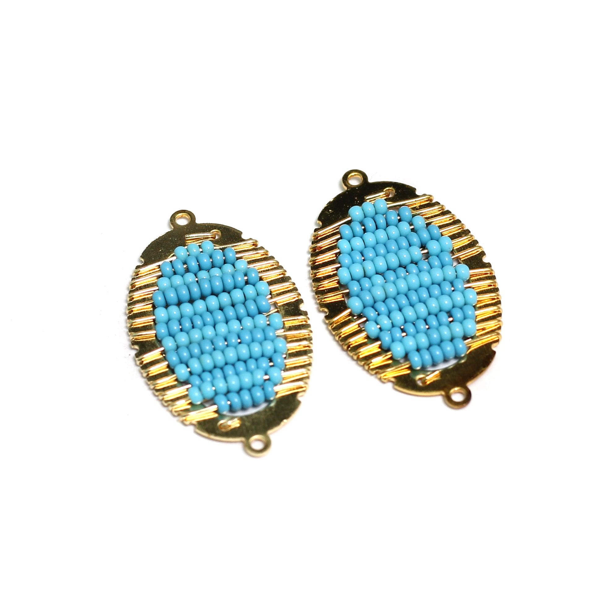 2 Pcs, 34x20mm Miyuki Beads Oval Connector and Earrings Components