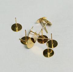 50 Gms, 8mm Golden Earring Posts Flat Pad Blank Tray Stud