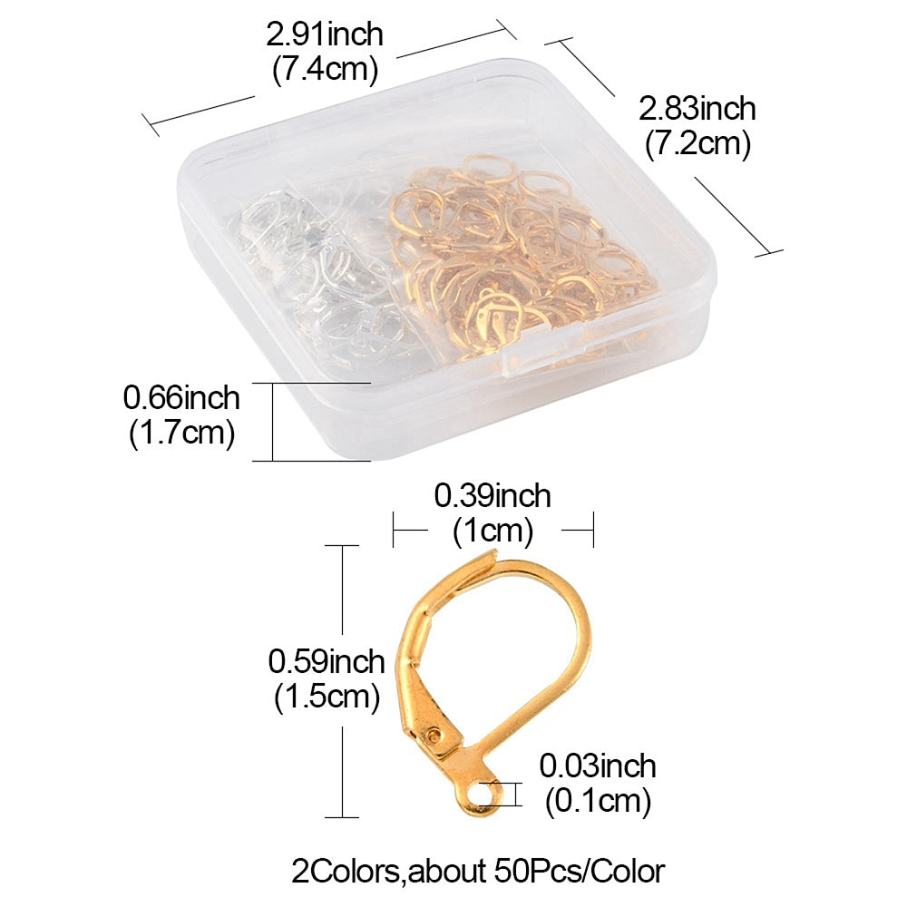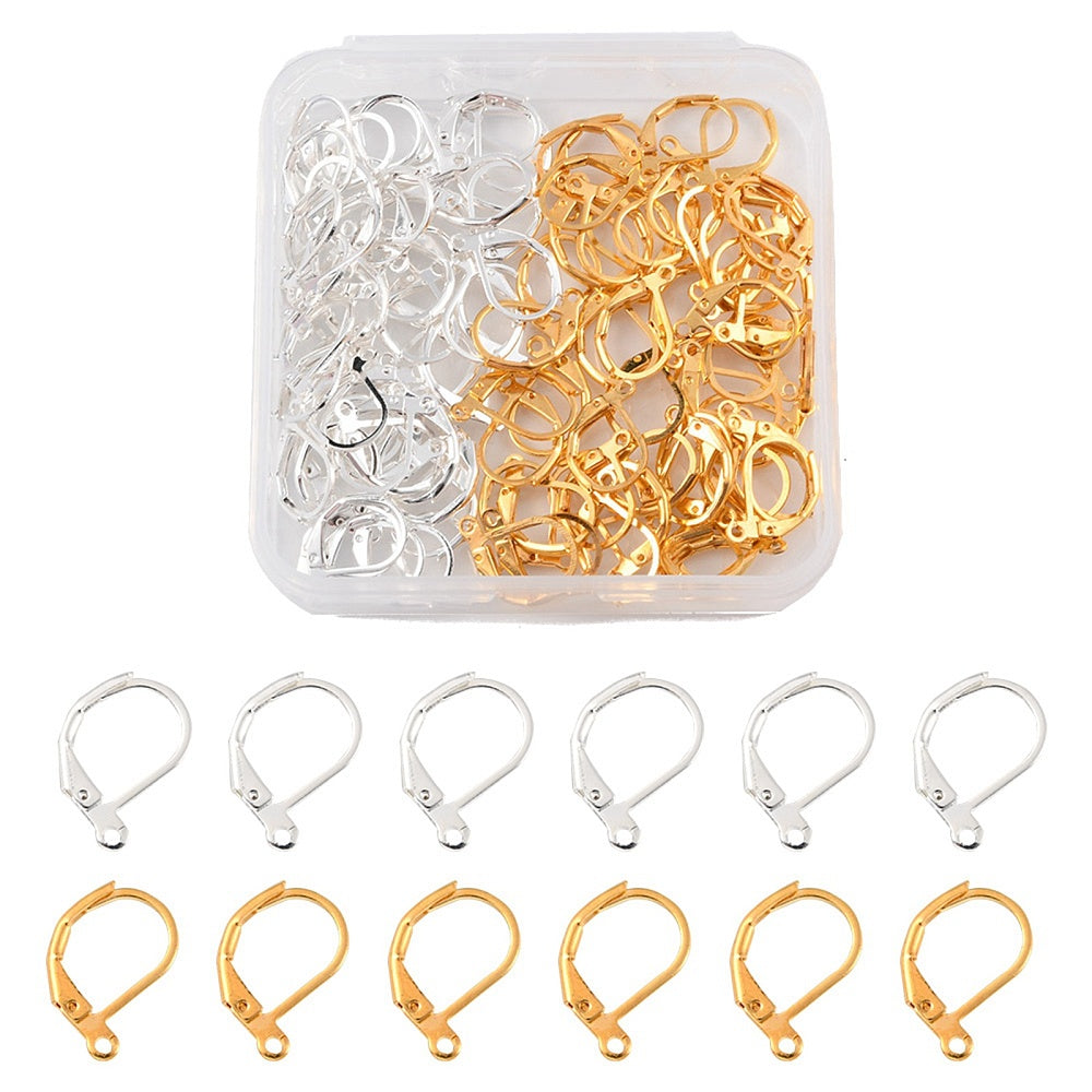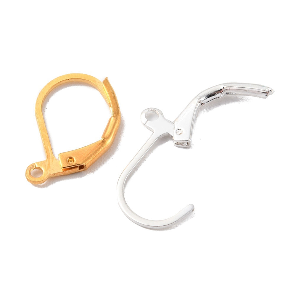 8 Pcs, 15x10mm,2 Colors Brass Leverback Earring Findings, with Horizontal Loops, Lead Free and Cadmium Free, Golden & Silver.