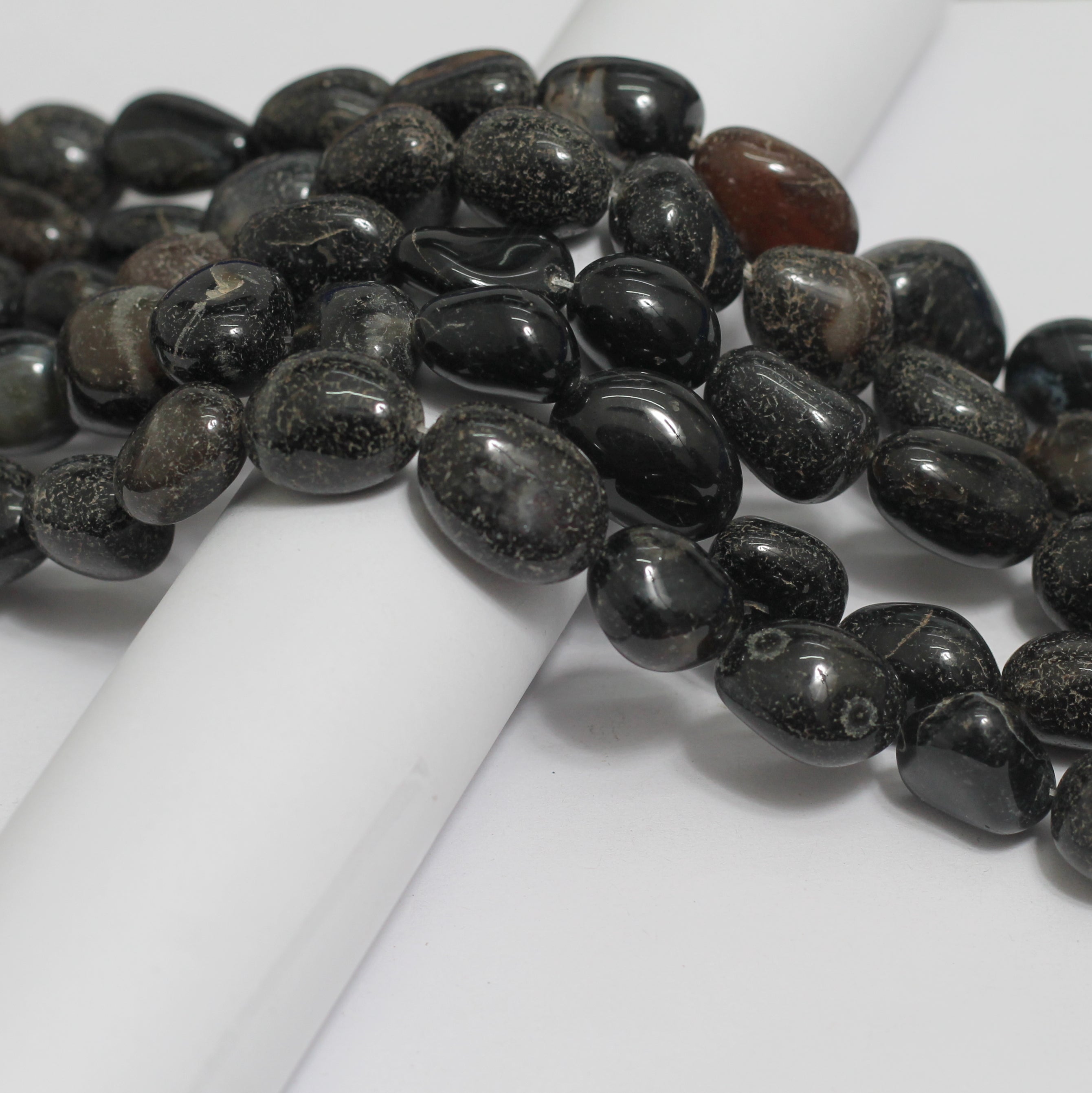 ⚫ Tumble Black Onyx Stone Beads – 13-17mm