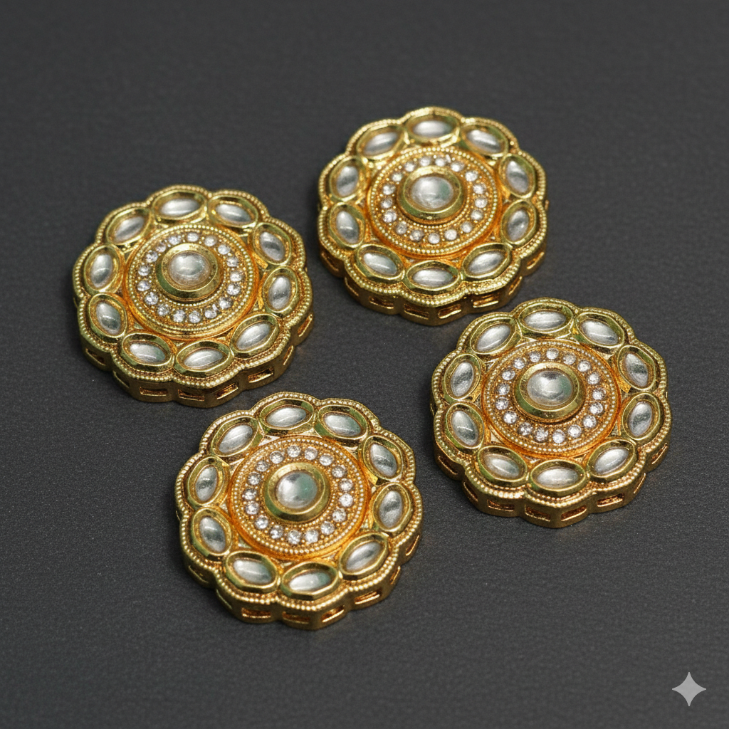 4 Pcs, 25mm, Kundan Connectors Golden