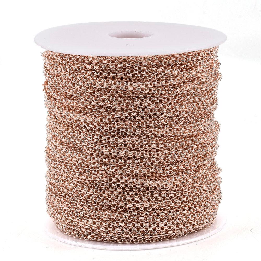 Soldered Brass Coated Iron Rolo Chains, Belcher Chain, with Spool, Rose Gold