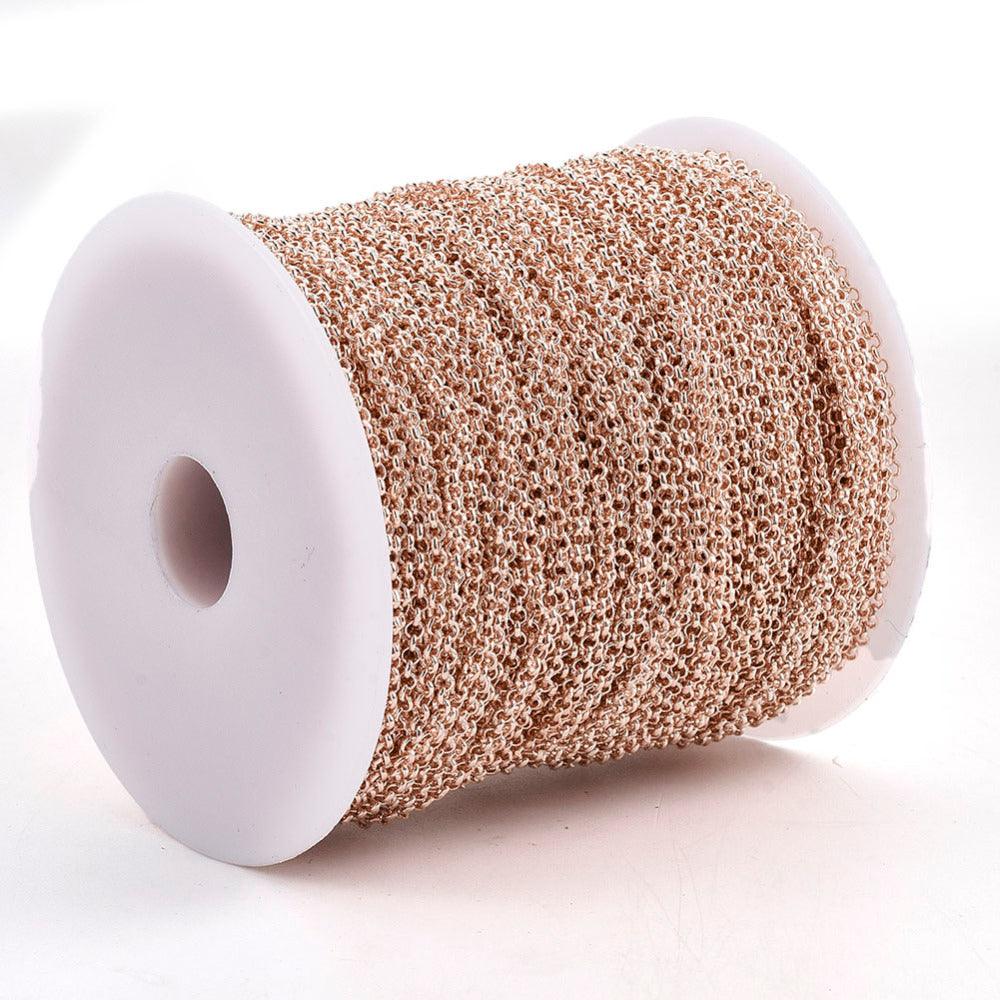 2.5x0.7mm, Brass Coated Rolo Chains Rose Gold