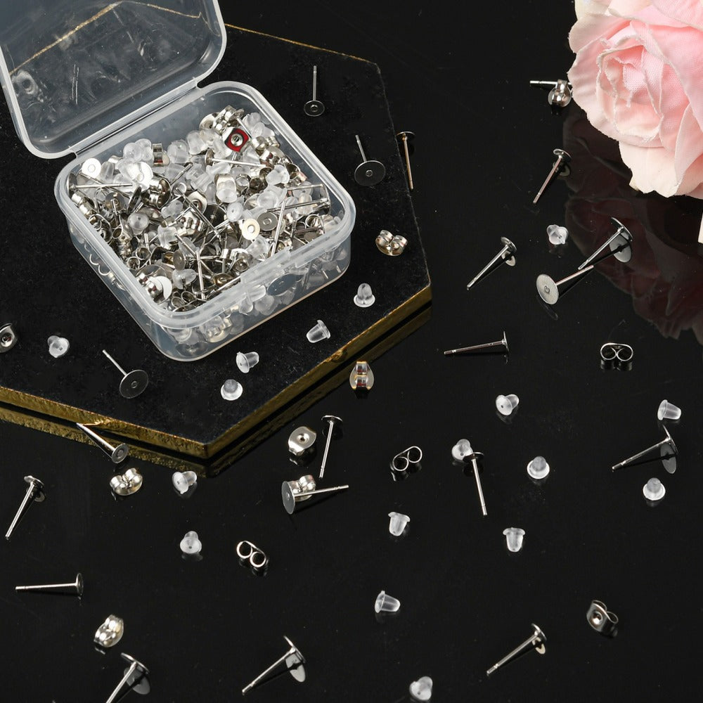 DIY Earring Making Kits, Stainless Steel Flat Round Blank Stud Earring, Stainless Steel & Ear Nuts 400pcs/box