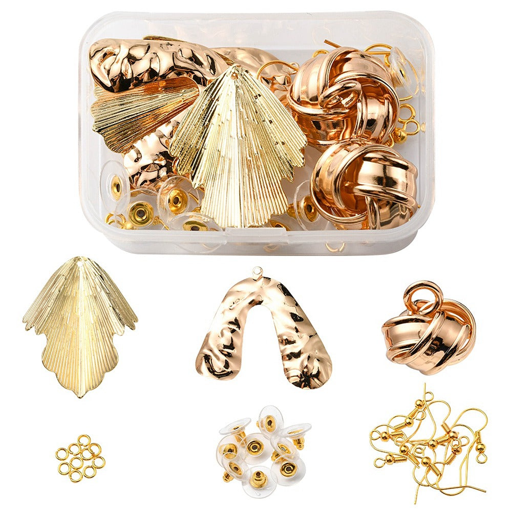 DIY Earrings Making Kit, Including Nugget & Flower & Arch Iron Pendants, Brass Earring Hooks & Ear Nuts, Light Gold