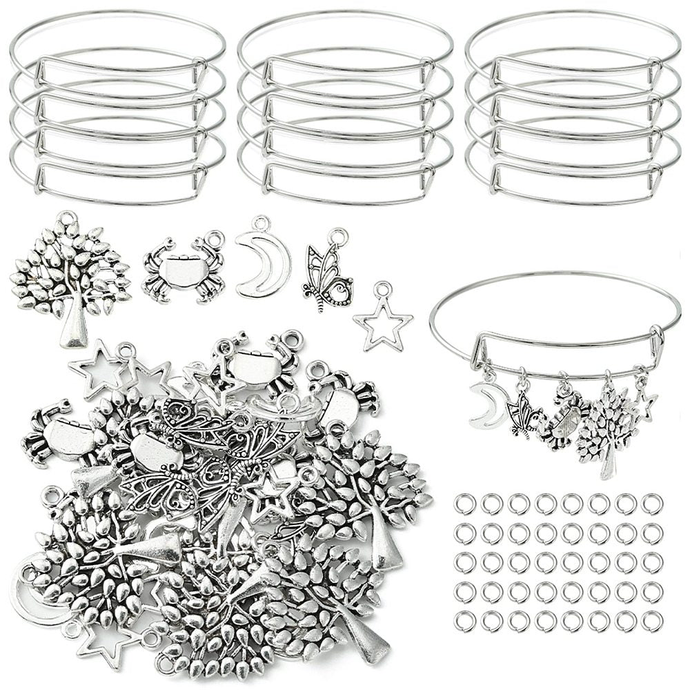 DIY Charm Bangle Making Kit, Including Adjustable Iron Expandable Bangle Making, Alloy Charms, Star & Crab & Butterfly & Tree, Platinum
