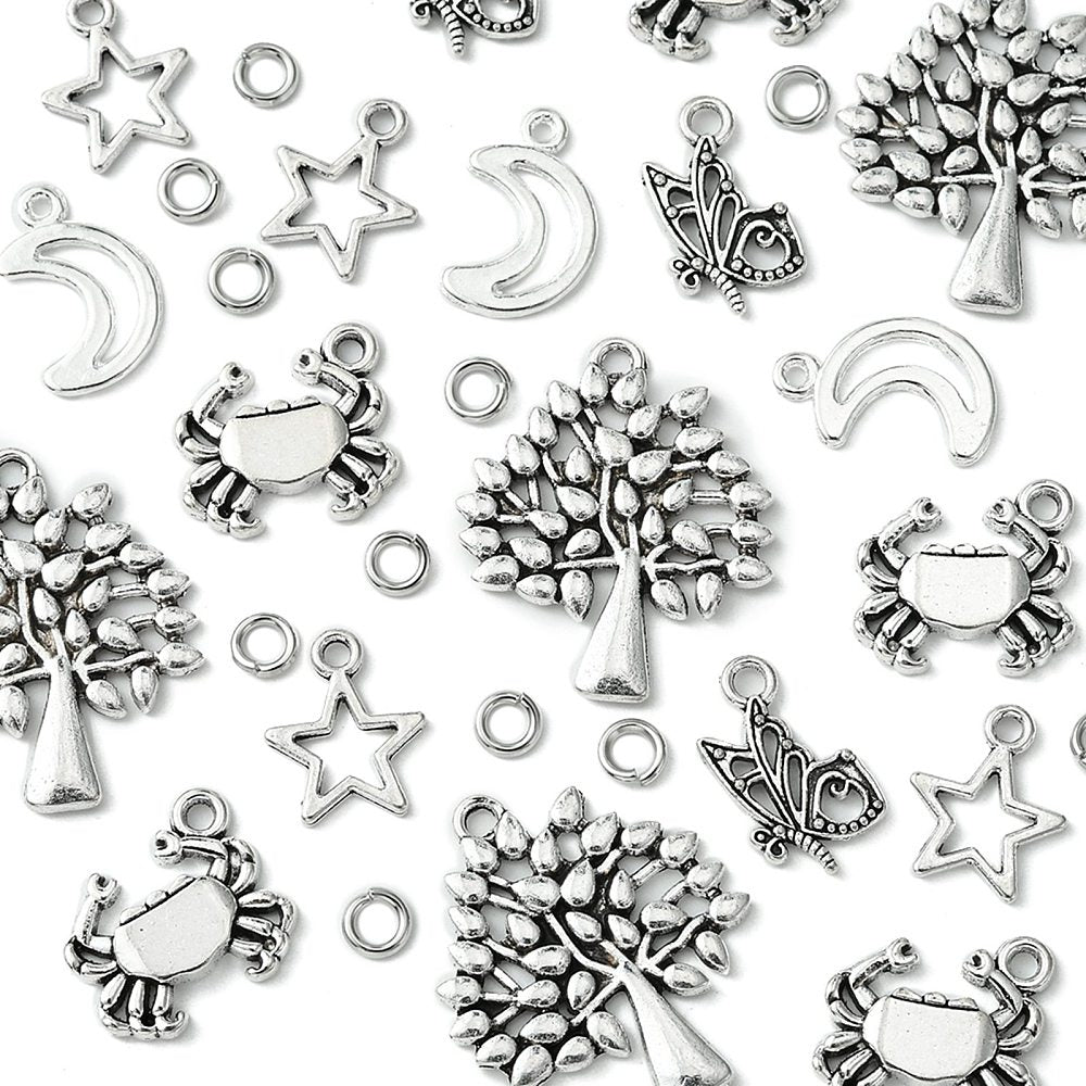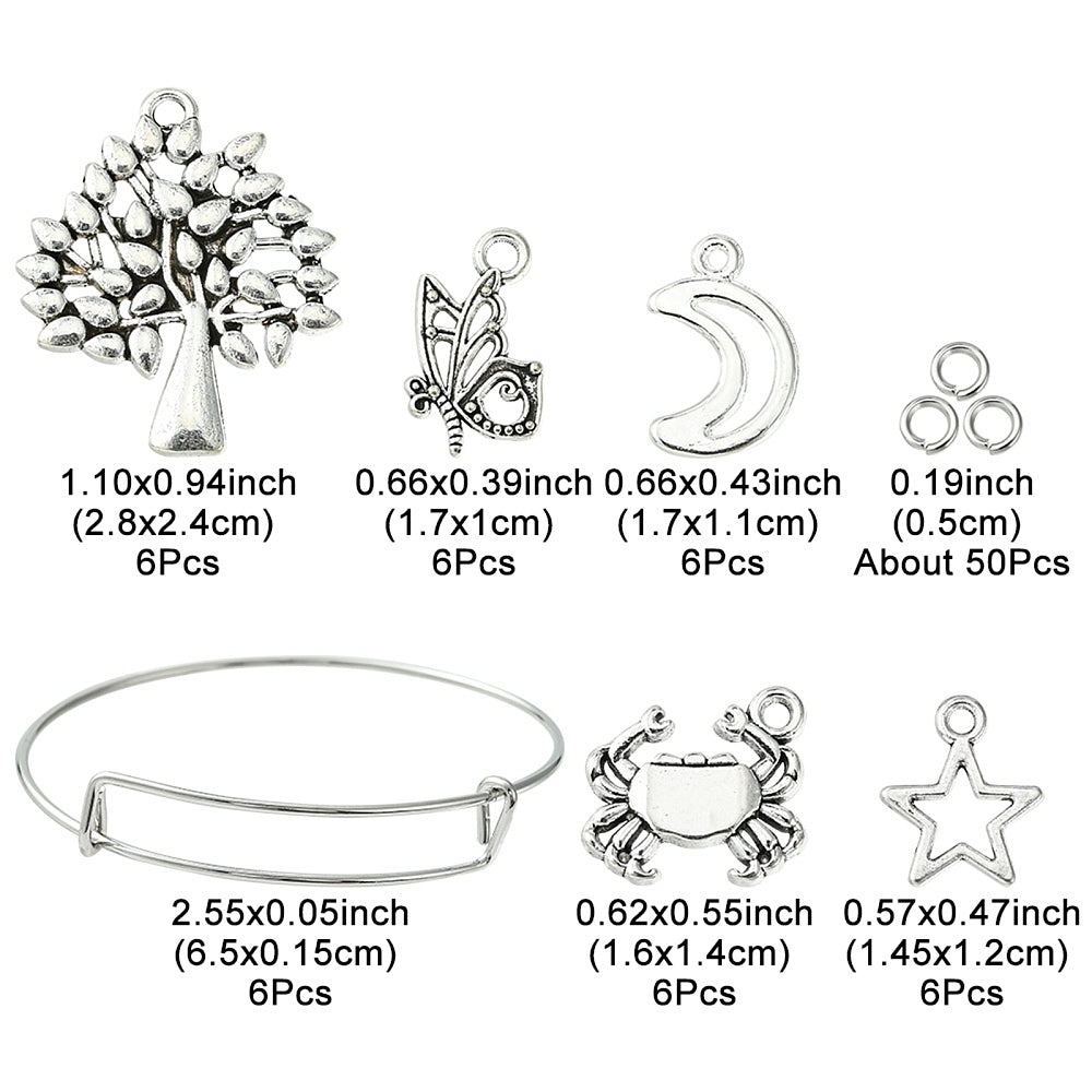 DIY Charm Bangle Making Kit, Adjustable Bangle Making, Alloy Charms, Star & Crab & Butterfly & Tree, Platinum, 90Pcs/bag