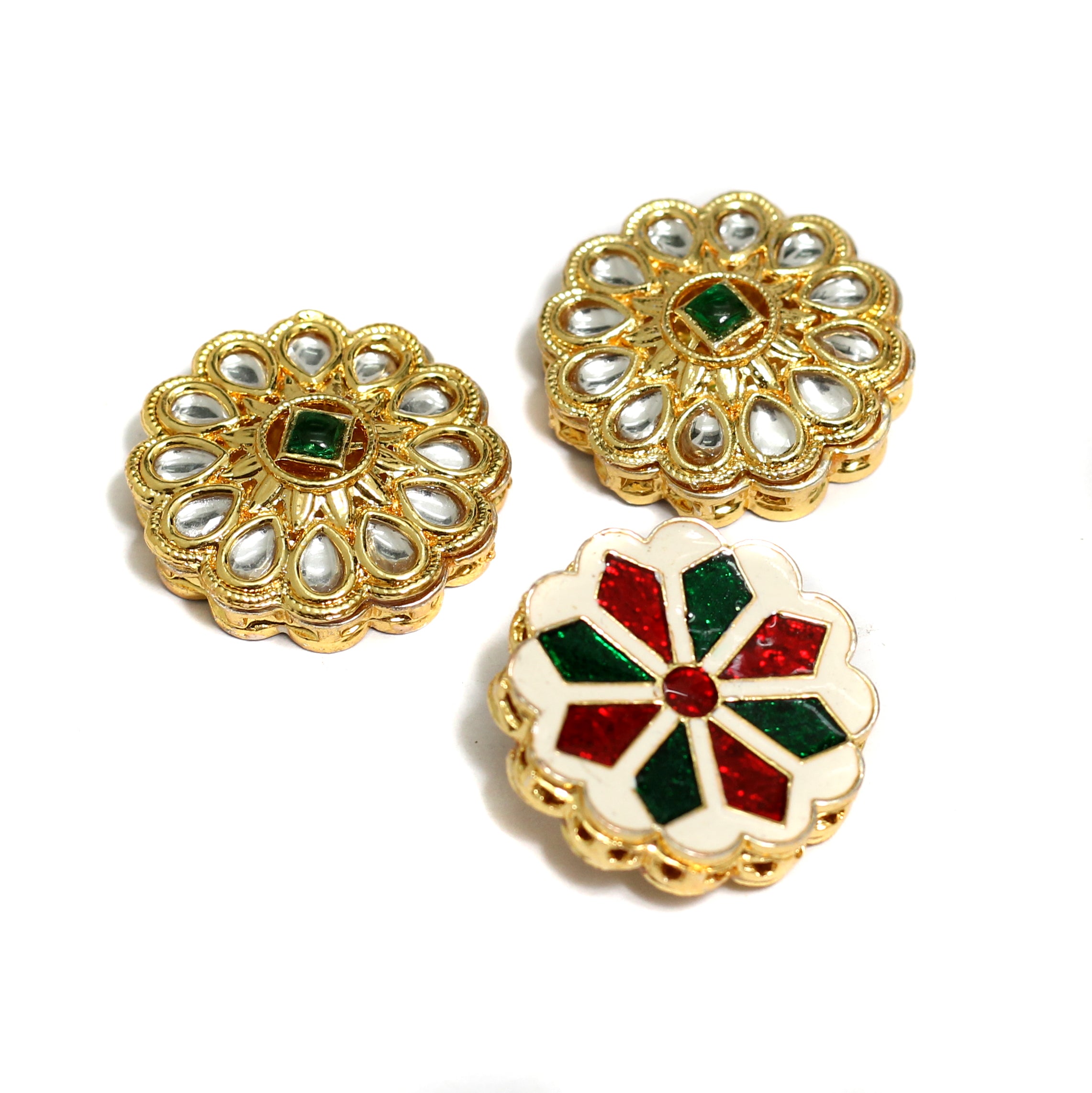 4 Pcs, 30mm Kundan Spacer Connectors Golden