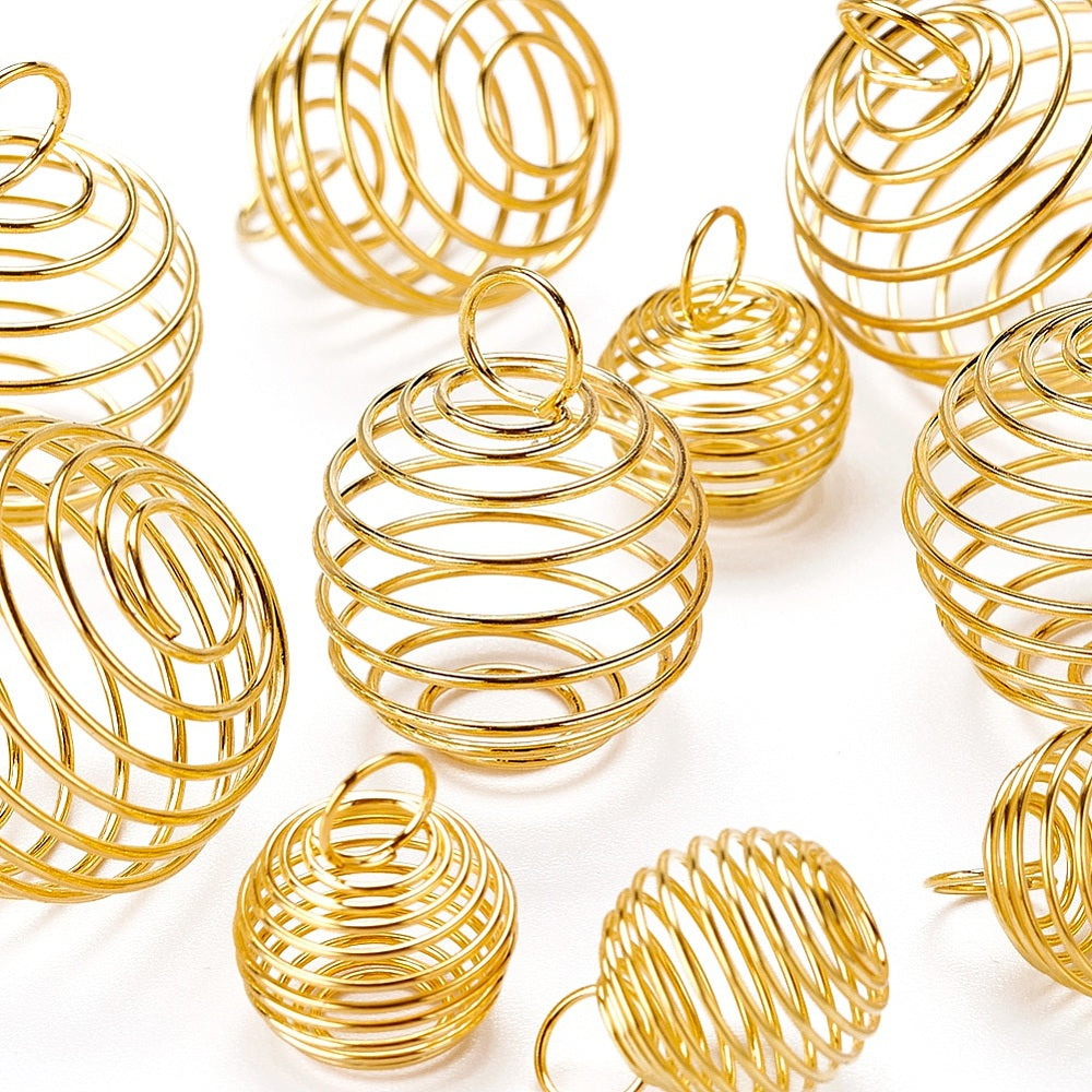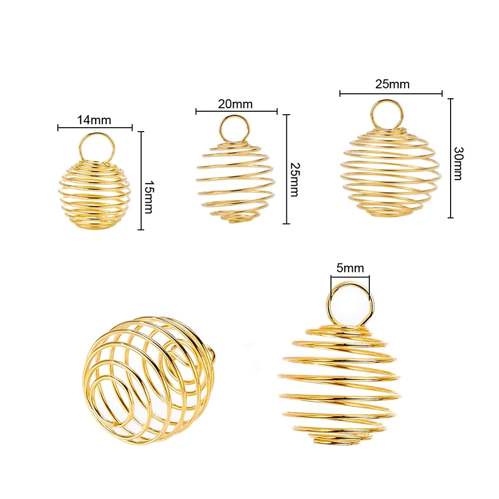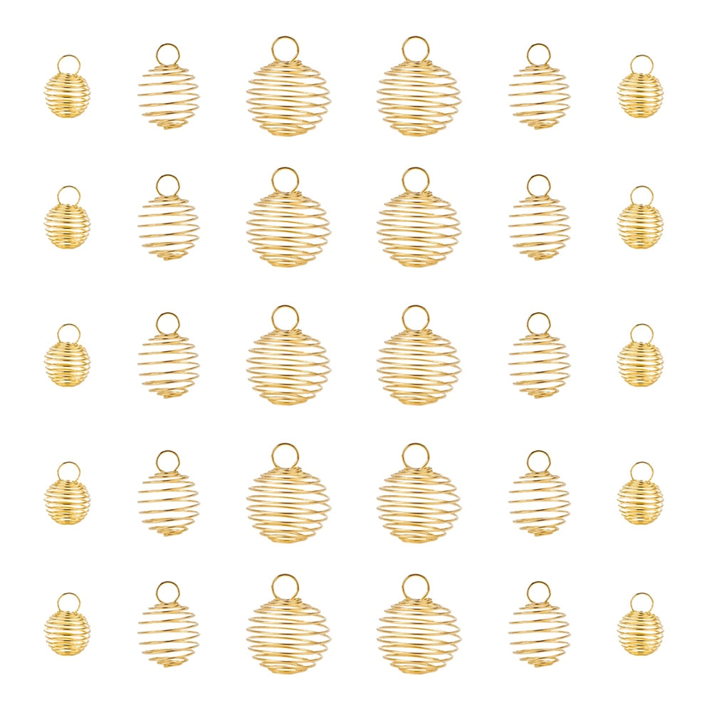 30Pcs 3 Style Round Iron Wire Pendants, Spiral Bead Cage Pendants