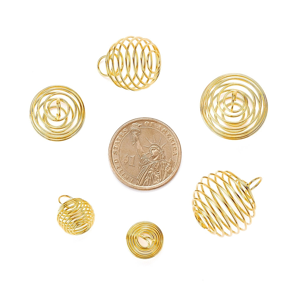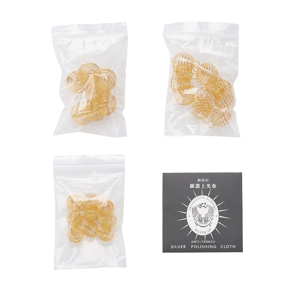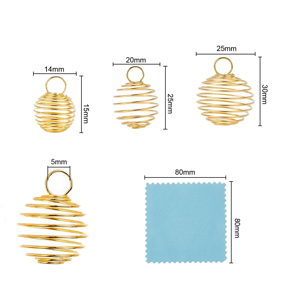 30Pcs 3 Style Round Iron Wire Pendants, Spiral Bead Cage Pendants, with Silver Polishing Cloth, Golden