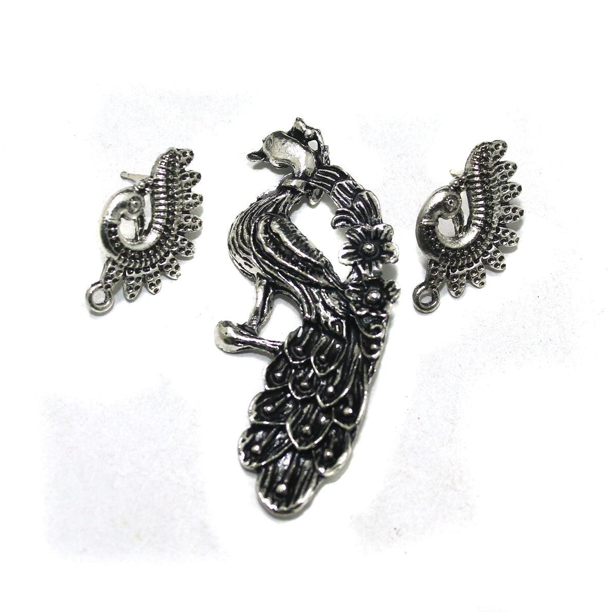 1 Set, German Silver Peacock Pendant with Earrings
