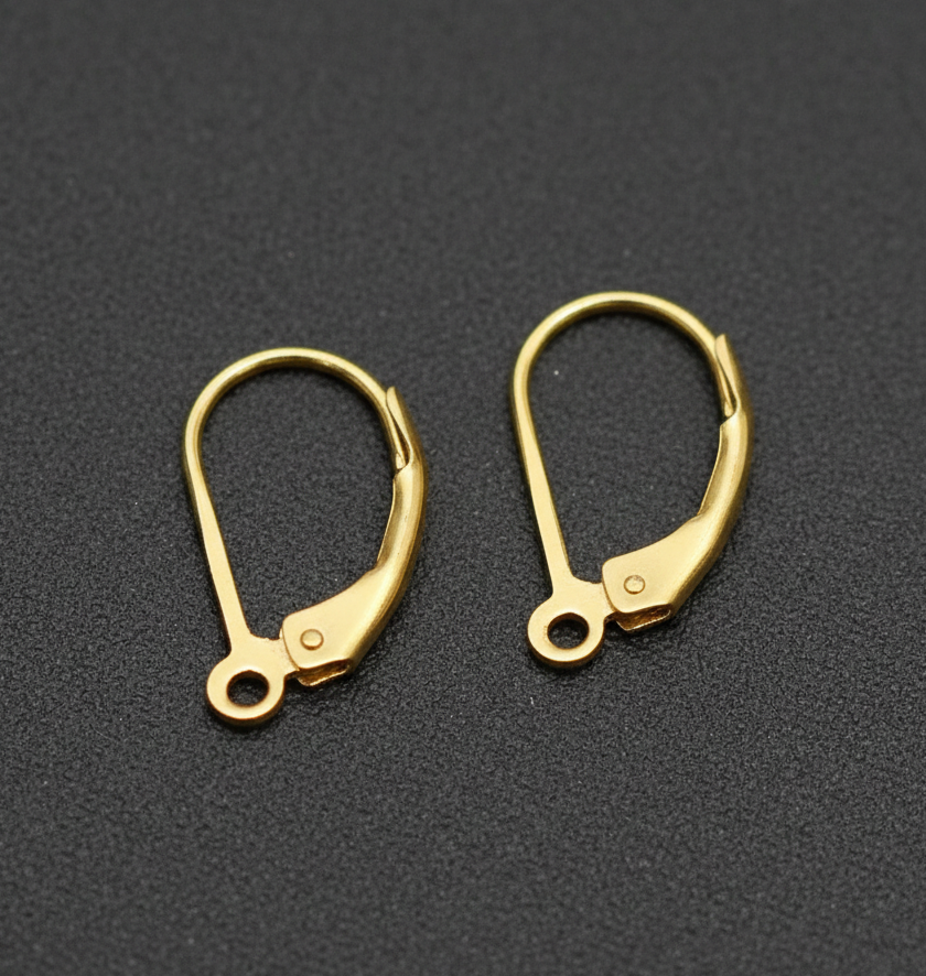 Sterling Silver hinged earwires. Very secure. The open loop below allows the addition of beads, etc. All Gold Plated over Sterling Silver