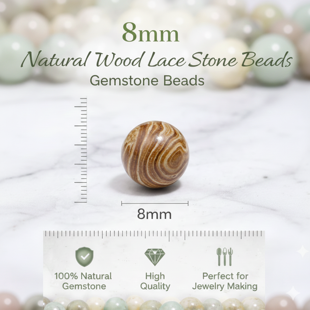 ✨ These beautiful round beads feature a natural wood lace stone texture, making them perfect for jewelry making, crafting, or DIY projects. Their earthy tones and unique patterns add elegance to necklaces, bracelets, earrings, and more.
