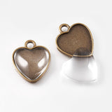 Alloy Cabochon Connector Settings and Glass Cabochons, Oval, Antique Silver, 28.5x15.5x1.8mm