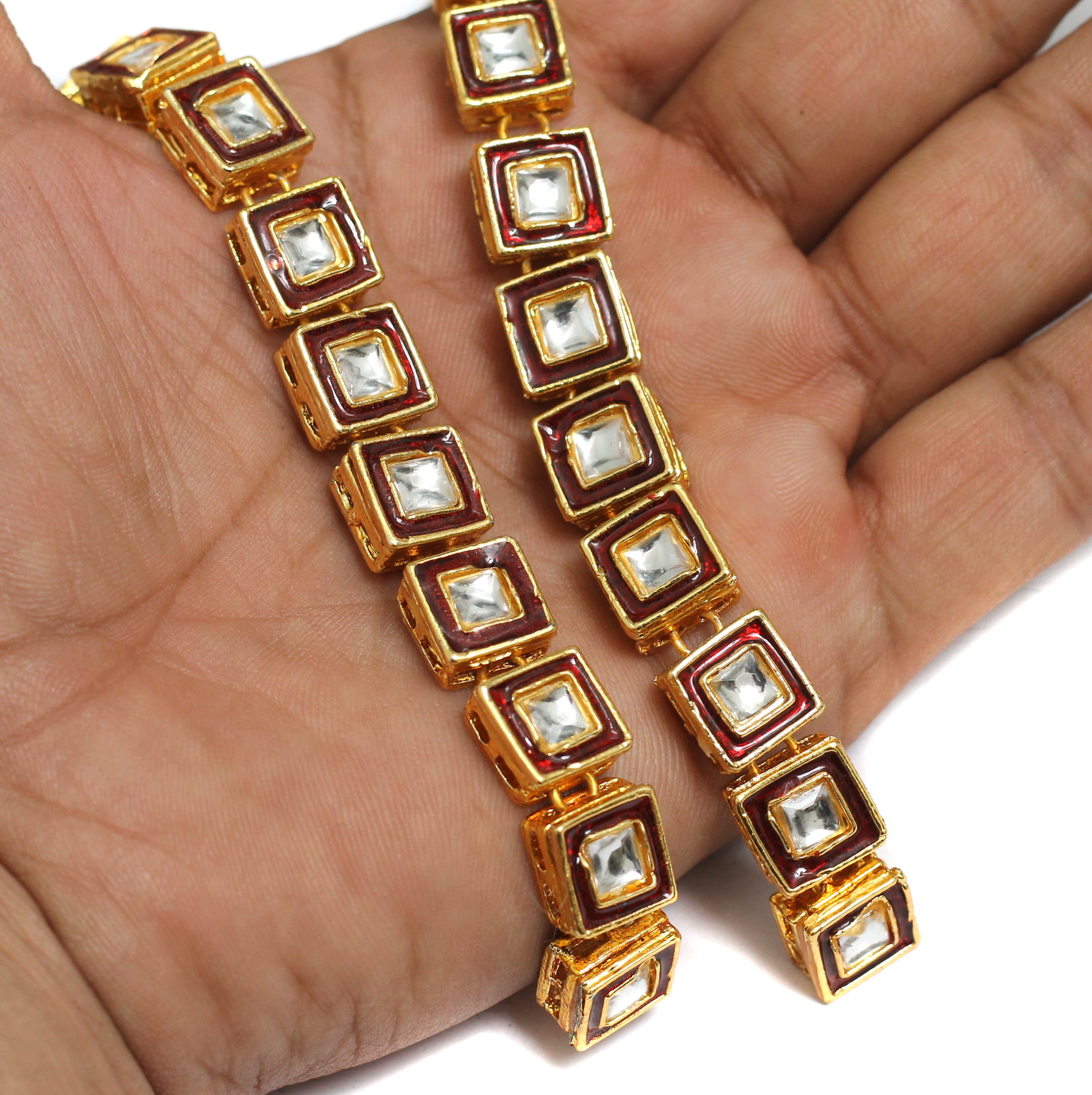 25 Pcs 11X11mm Meenakari Kundan Kadi Chain
