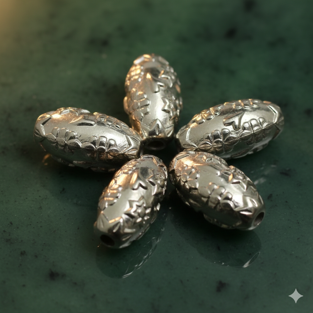 Available in a pack of 20 pcs., Any jewellery making art is incomplete without the shine added by 20 CC Oval Beads Silver Finish 25x12 mm. Beadsnfashion fulfills this need of art extensively. Our fabulous 20 CC Oval Beads Silver Finish 25x12 mm account for the beauty of any jewellery, latkans, etc. Each of the design is innovative in itself and adds uniqueness to any craft. Five colour variants and two kind of materials are the options available to choose from.