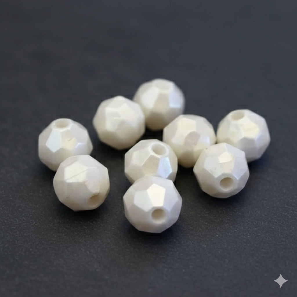 Available In a pack of 50 pcs., Enhance your jewellery making project or any craft which requires beads with the latest 50 Faceted Acrylic Pearl Round Beads Off White 18 mm available at beadsnfashion individually or in bulk. The eye catchy colours and designs will make your work radiate the excellence of choice and craftsmanship. These 18 Faceted Acrylic Pearl Round Beads Off White 18 mm can be deployed for varied purposes such as jewellery making, embroidery, school craft, latkans, wedding giveaways, etc, the list is endless and goes a long way with your imagination