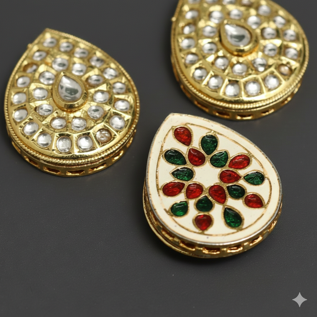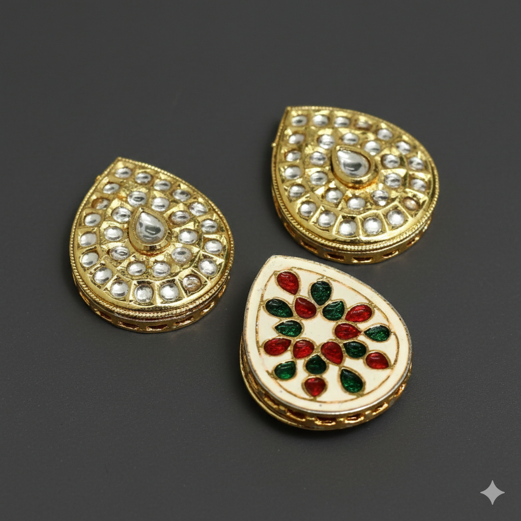 ✨ 4 Pcs Kundan Spacer Connectors – 39 × 31 mm (Golden) ✨