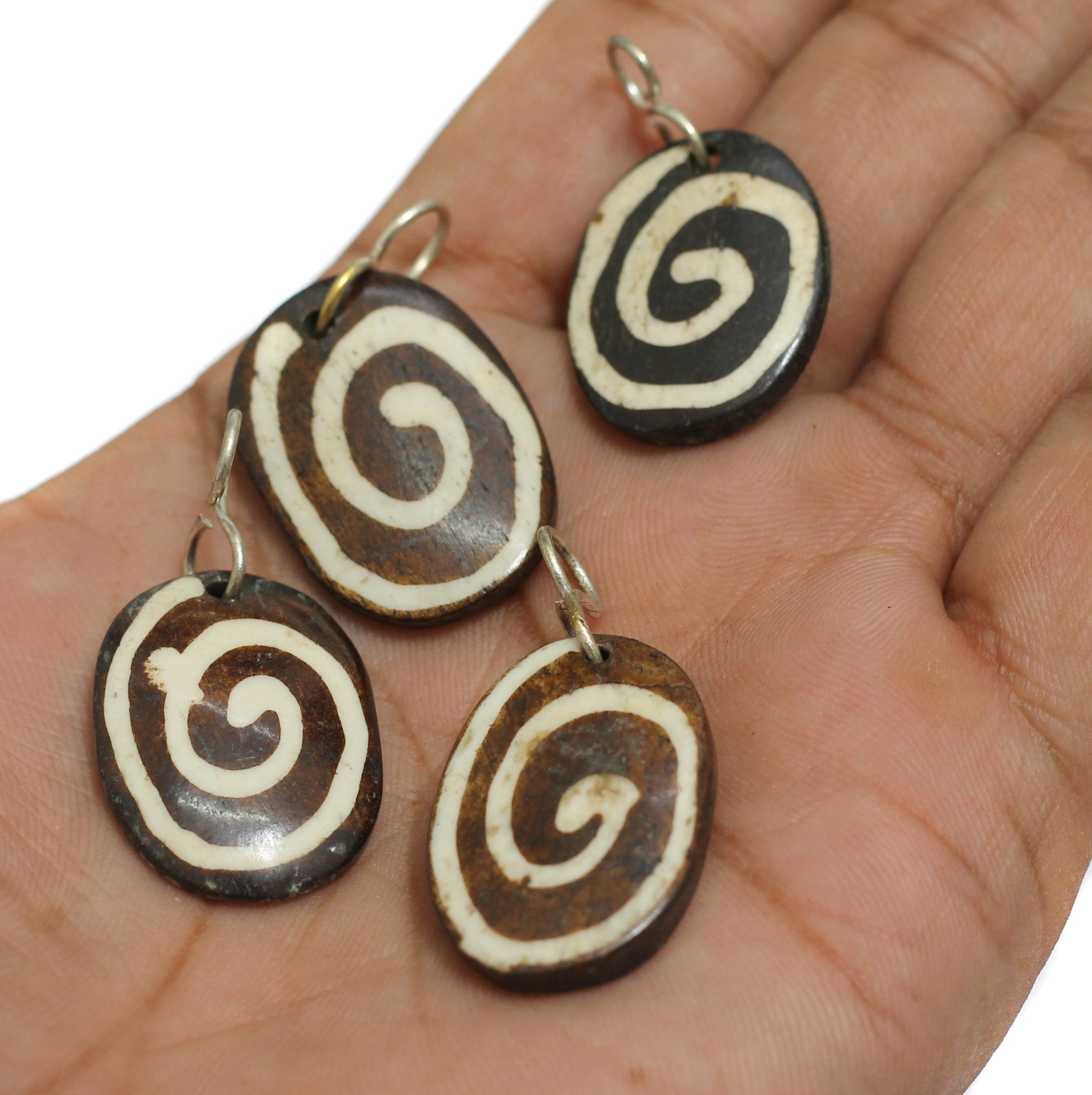 10 Pcs Flat Oval Bone Pendants 29x19mm