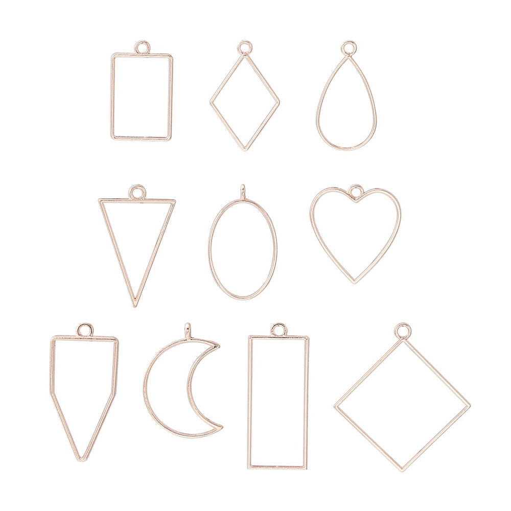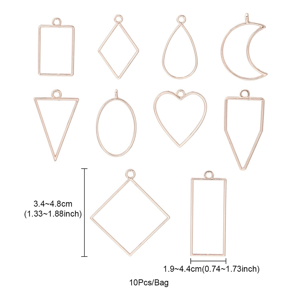 10Pcs Alloy Open Back Bezel Pendants, Supplies Filling Accessories, for Epoxy Resin, Resin Jewelry Making, Mixed Shapes, Rose Gold