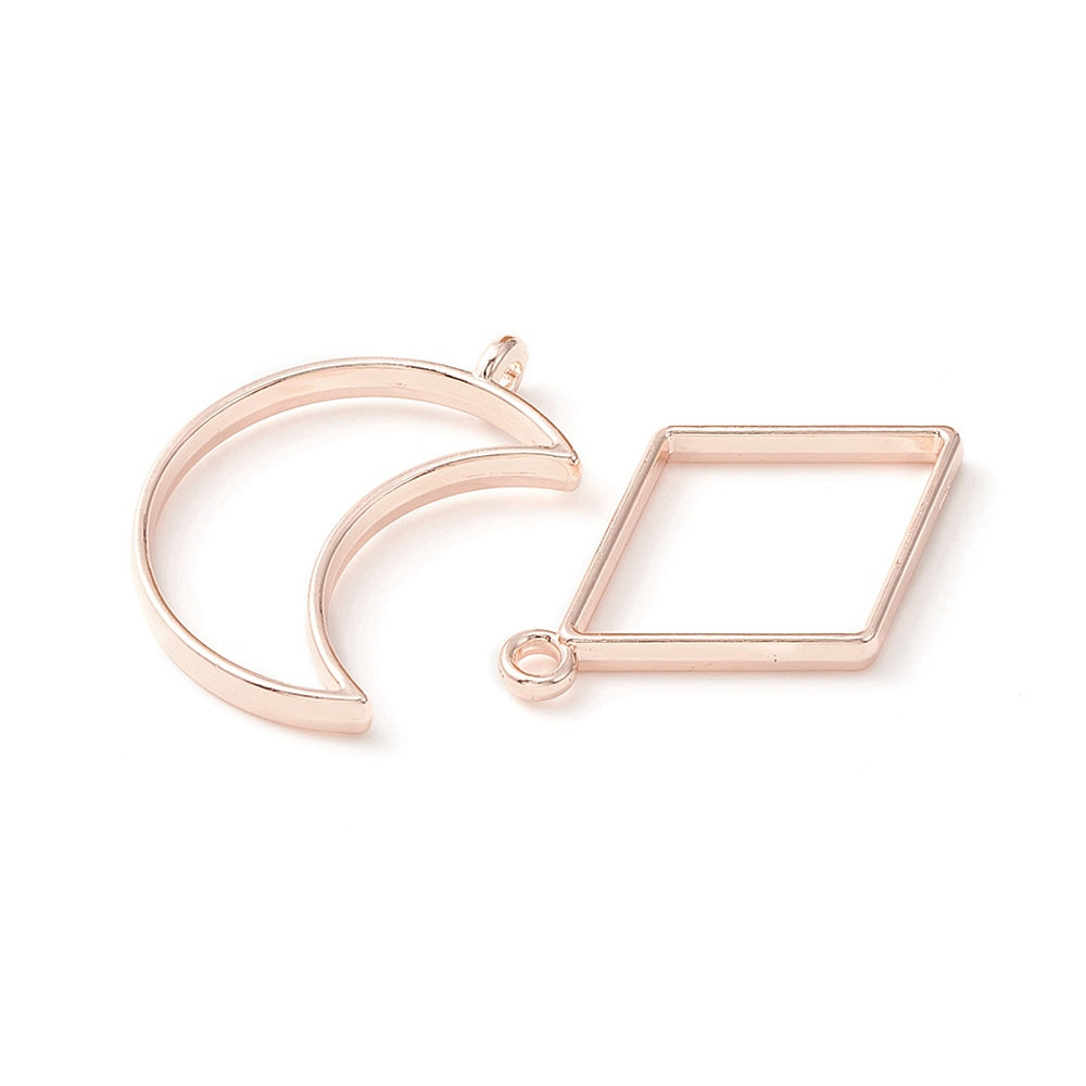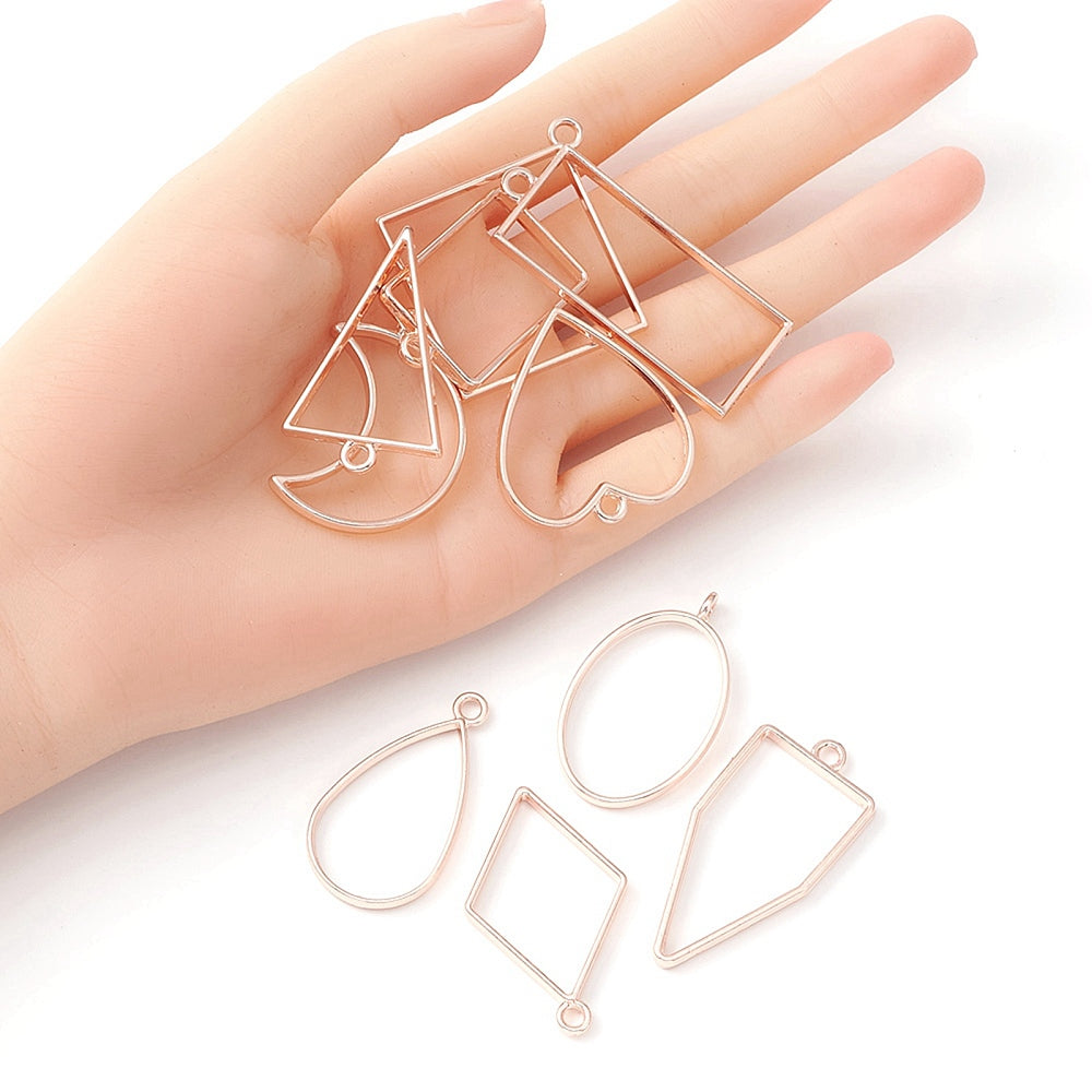 10 Pcs Alloy Open Back Bezel Pendants, for Epoxy Resin, Mixed Shapes, Rose Gold, 34~48x19~44mm