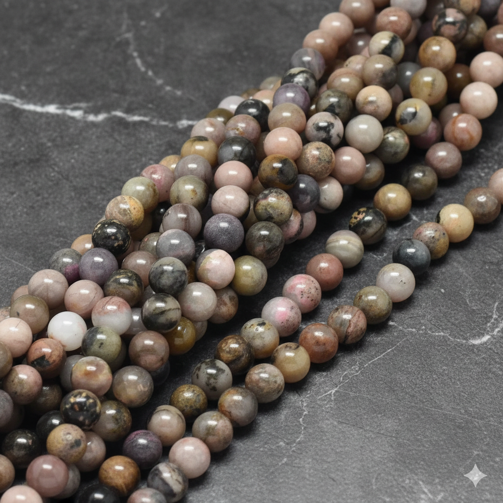 🌸 Natural Rhodonite Beads Strands – Round