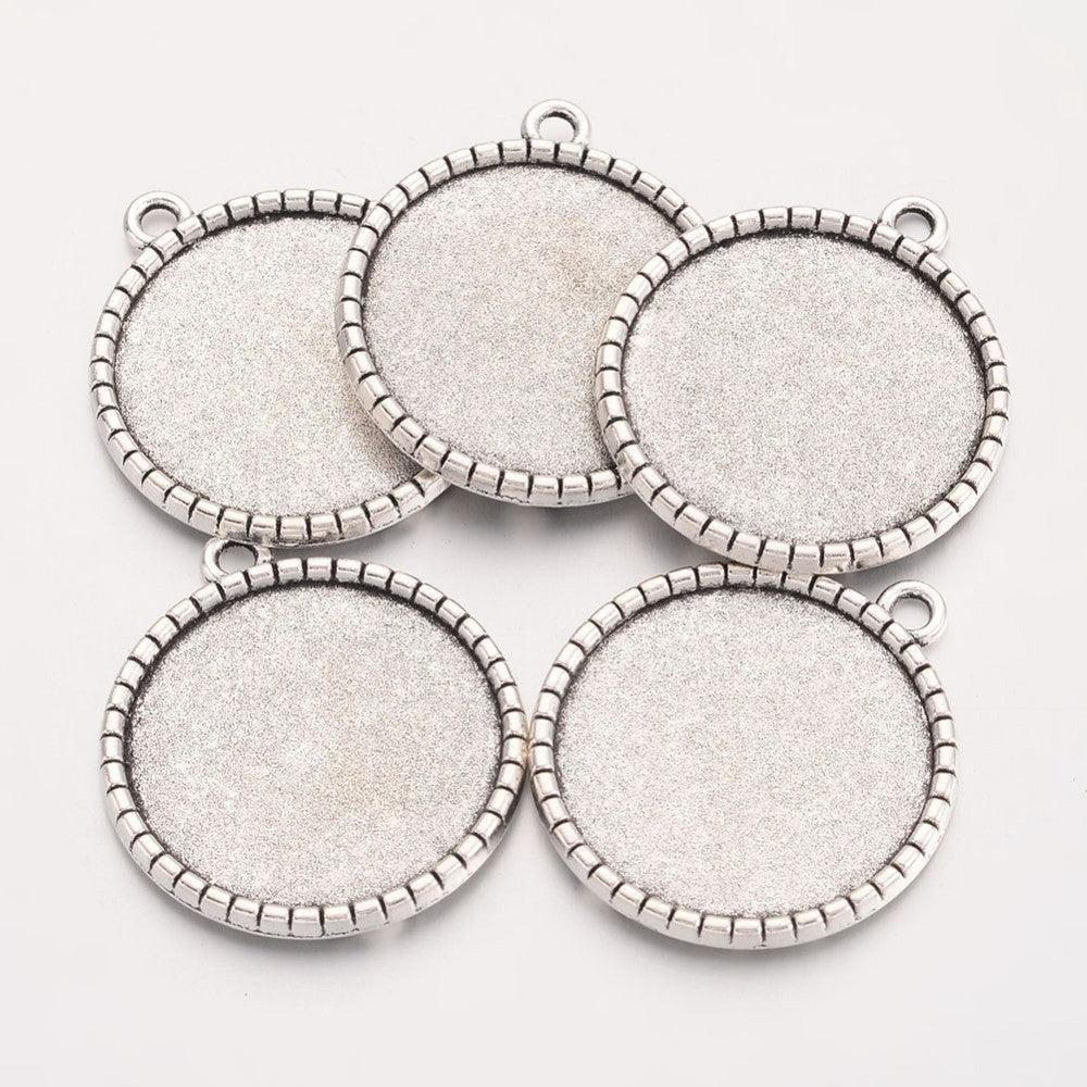 1.25 Inch Tibetan Style Flat Round Alloy Pendant Cabochon Settings Antique Silver