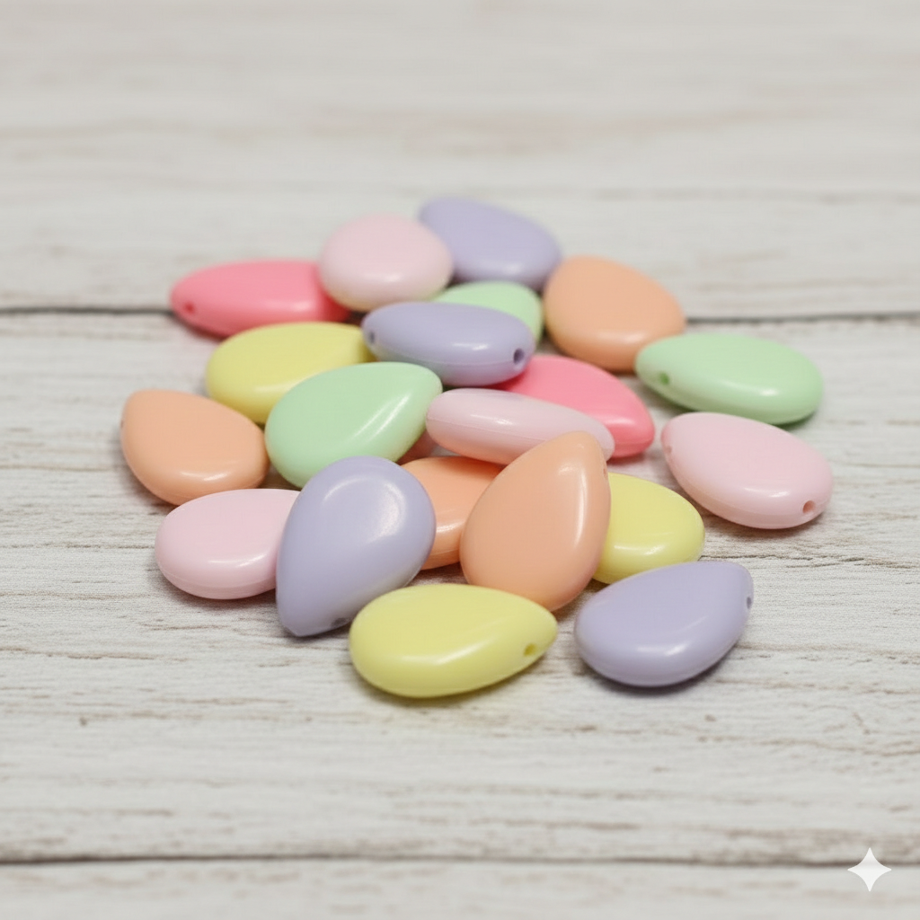 💧 Drop Shape Beads: 25x13mm assorted acrylic drop beads in vibrant multicolor.