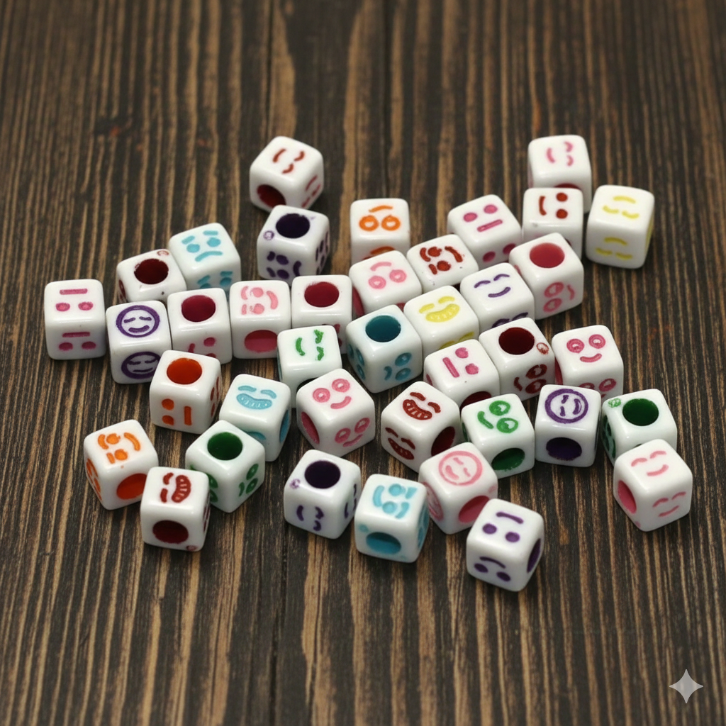 100 gm, 6mm Acrylic Square Smiley Emoji Beads Multicolor