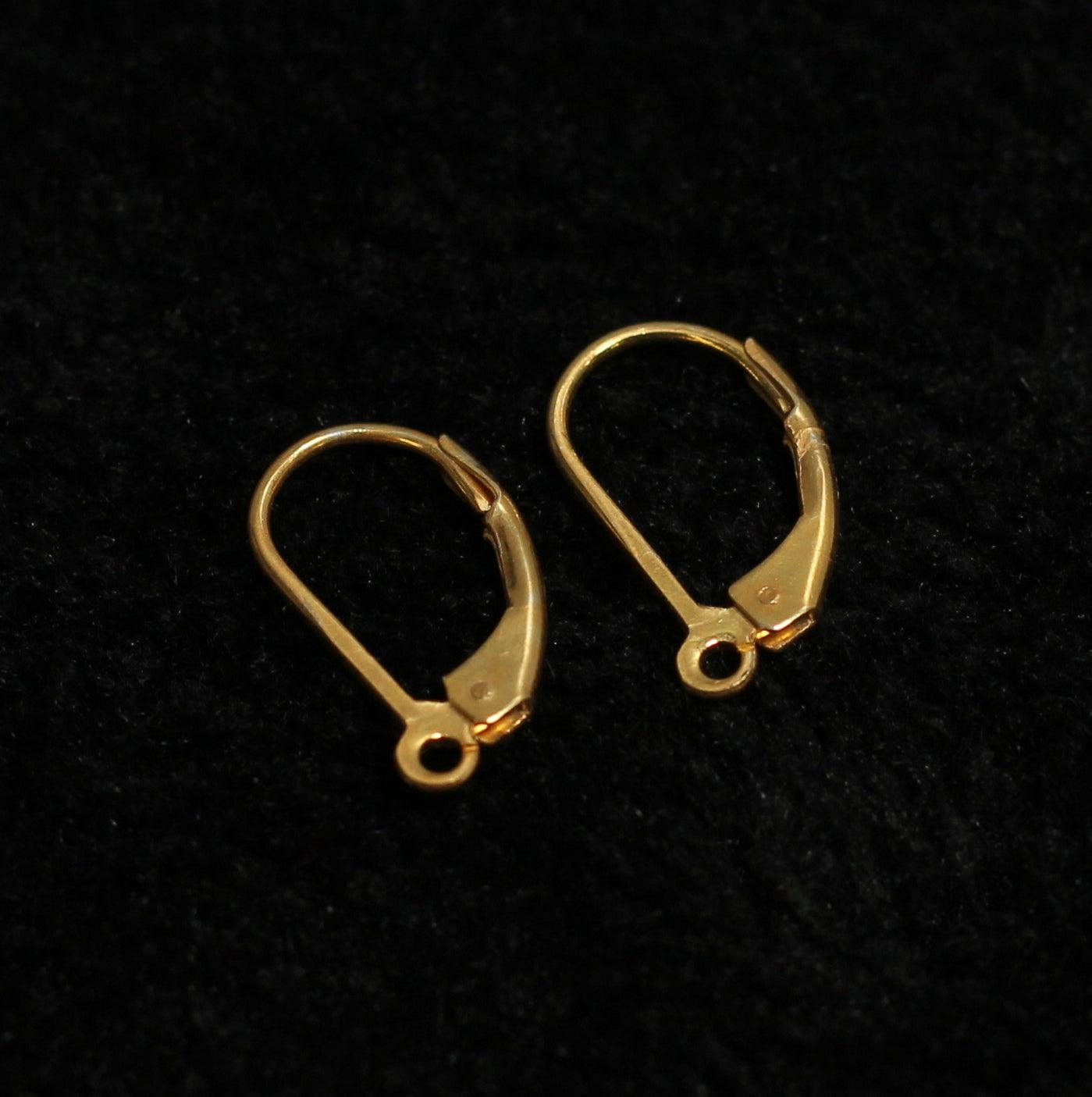 Sterling Silver hinged earwires. Very secure. The open loop below allows the addition of beads, etc. All Gold Plated over Sterling Silver