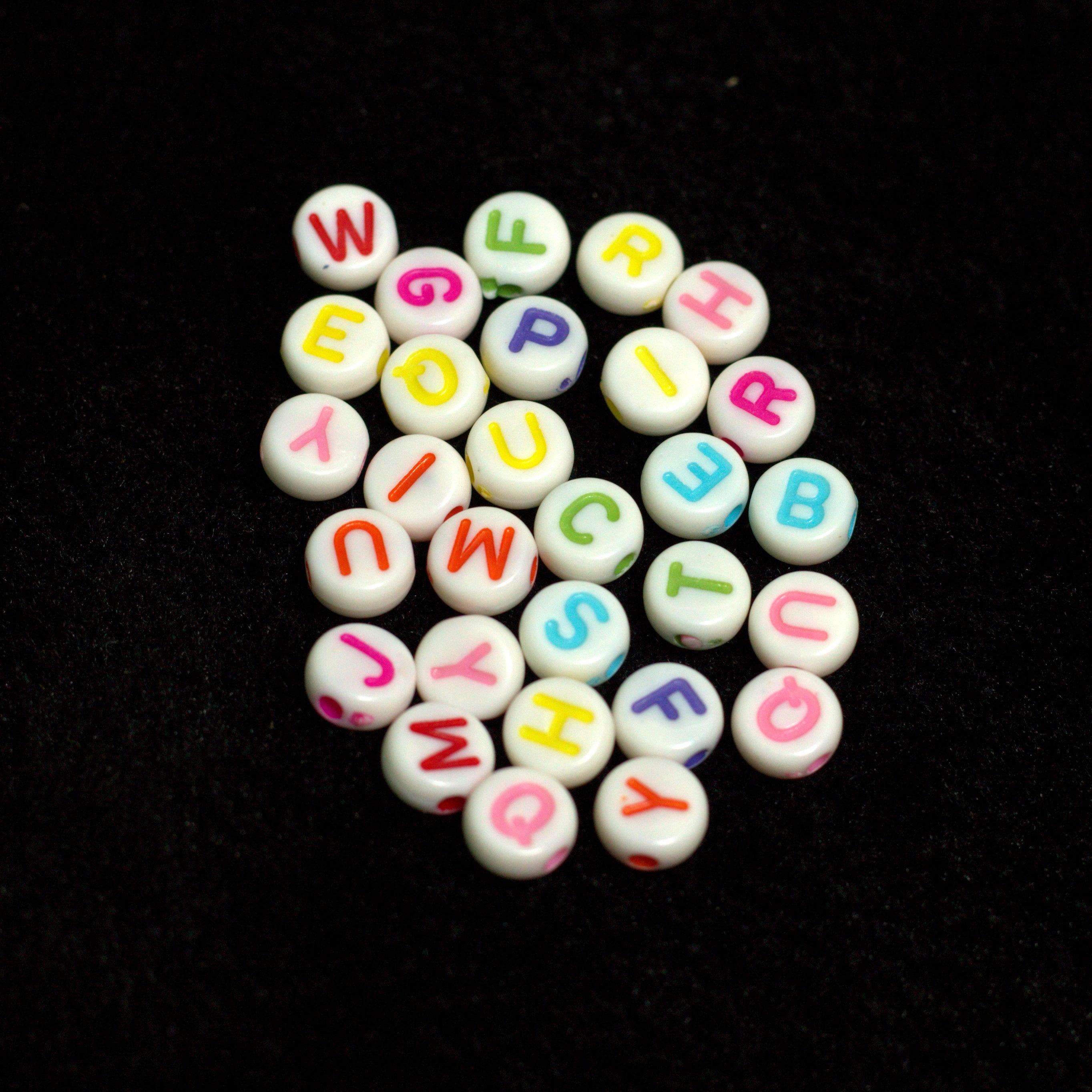 100 gm, Acrylic Round A to Z Alphabet Letter Beads Multicolor 6mm