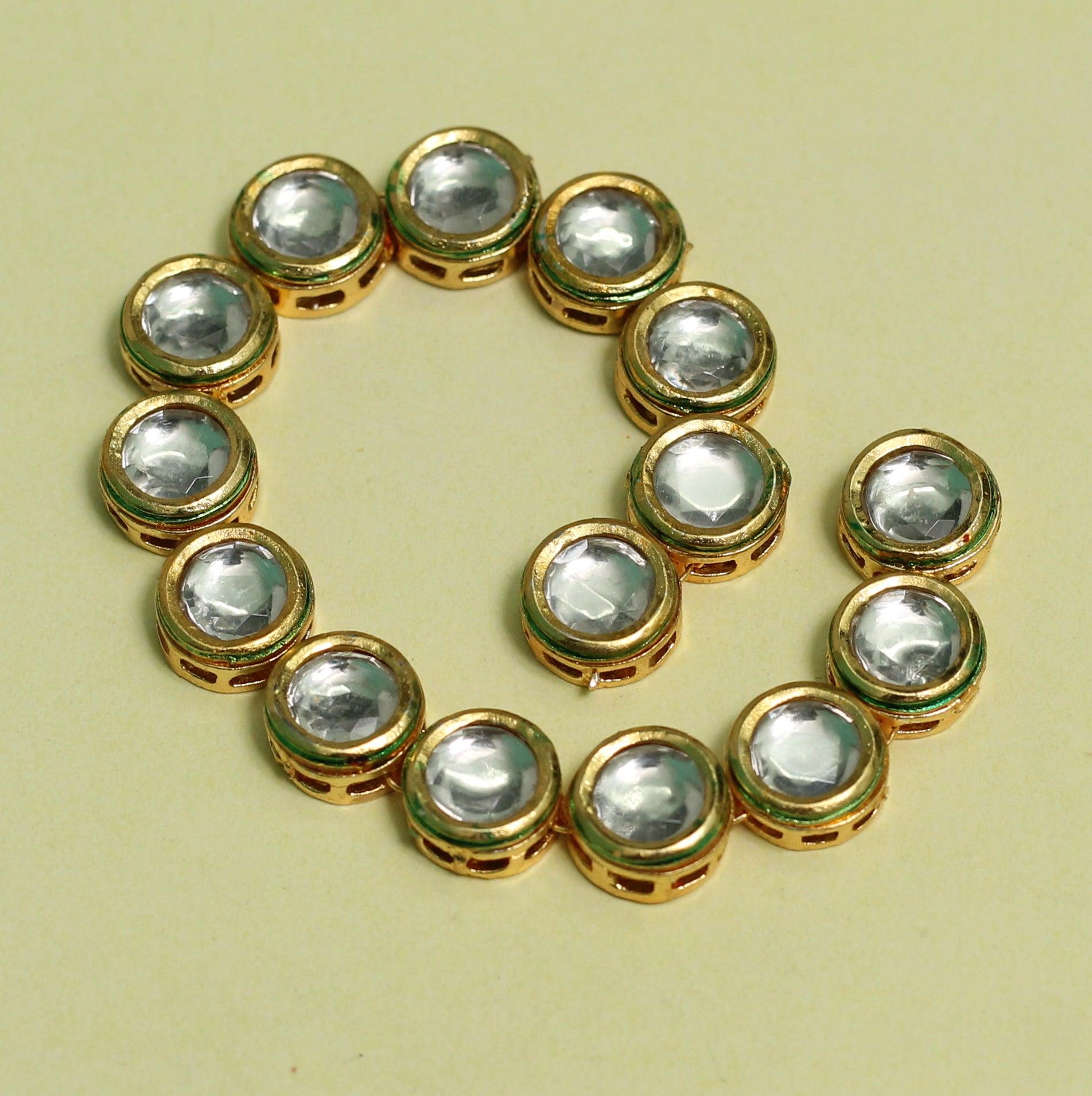Elegant 11mm Golden Kundan Connectors, ideal for crafting beautiful earrings, necklaces, bangles, and other traditional or modern jewellery pieces.