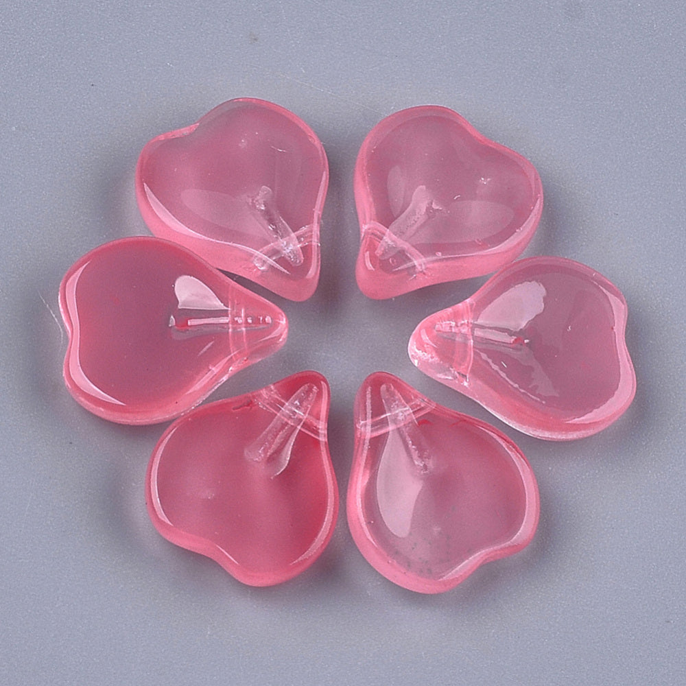 15x13x5mm, Transparent Glass Pendants, Petal, Crimson