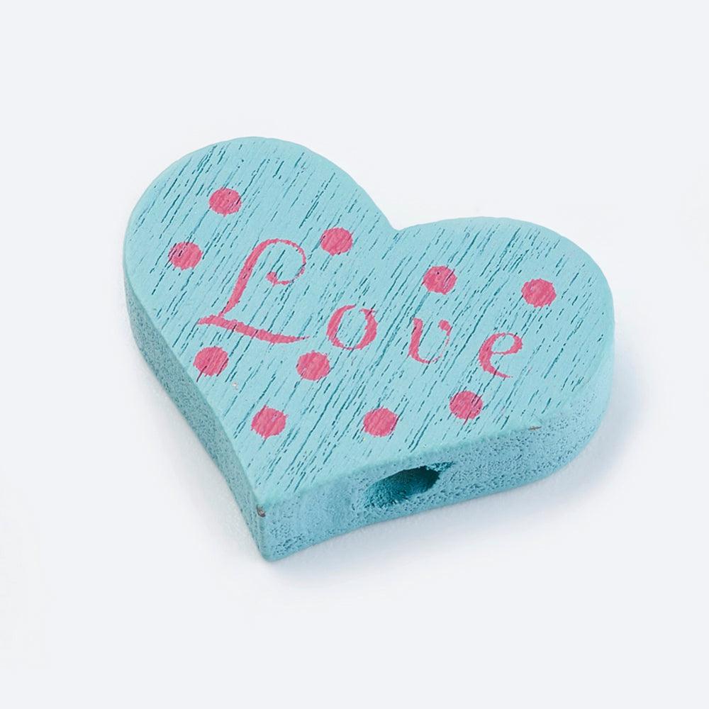 19x23x5mm, Wood Printed Heart Beads Word Love MultiColor