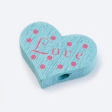 Natural Wood Printed Beads, Dyed, Heart with Word Love, For Valentine's Day, Mixed Color
