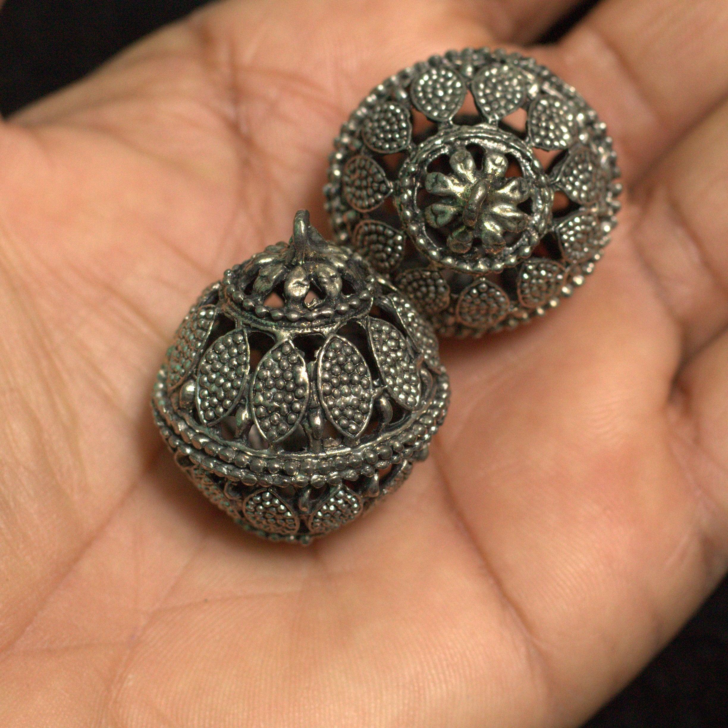 2 Pcs German Silver Ghungroo Ball Beads 35x29mm