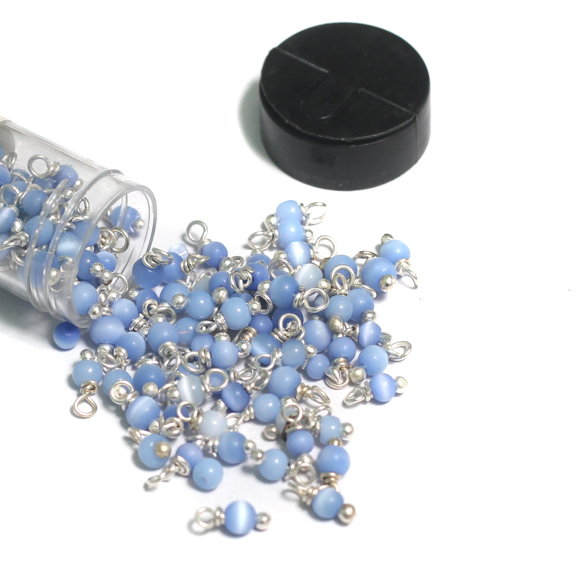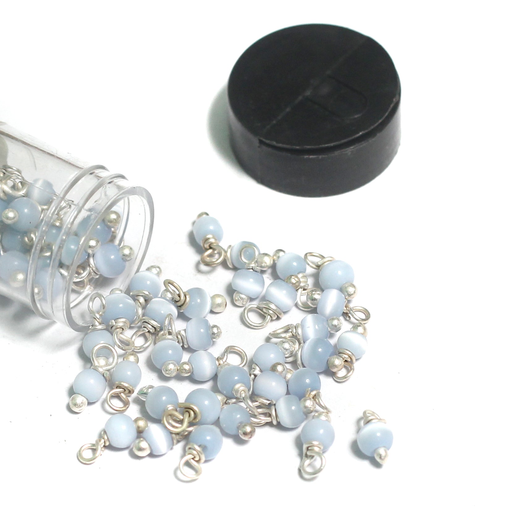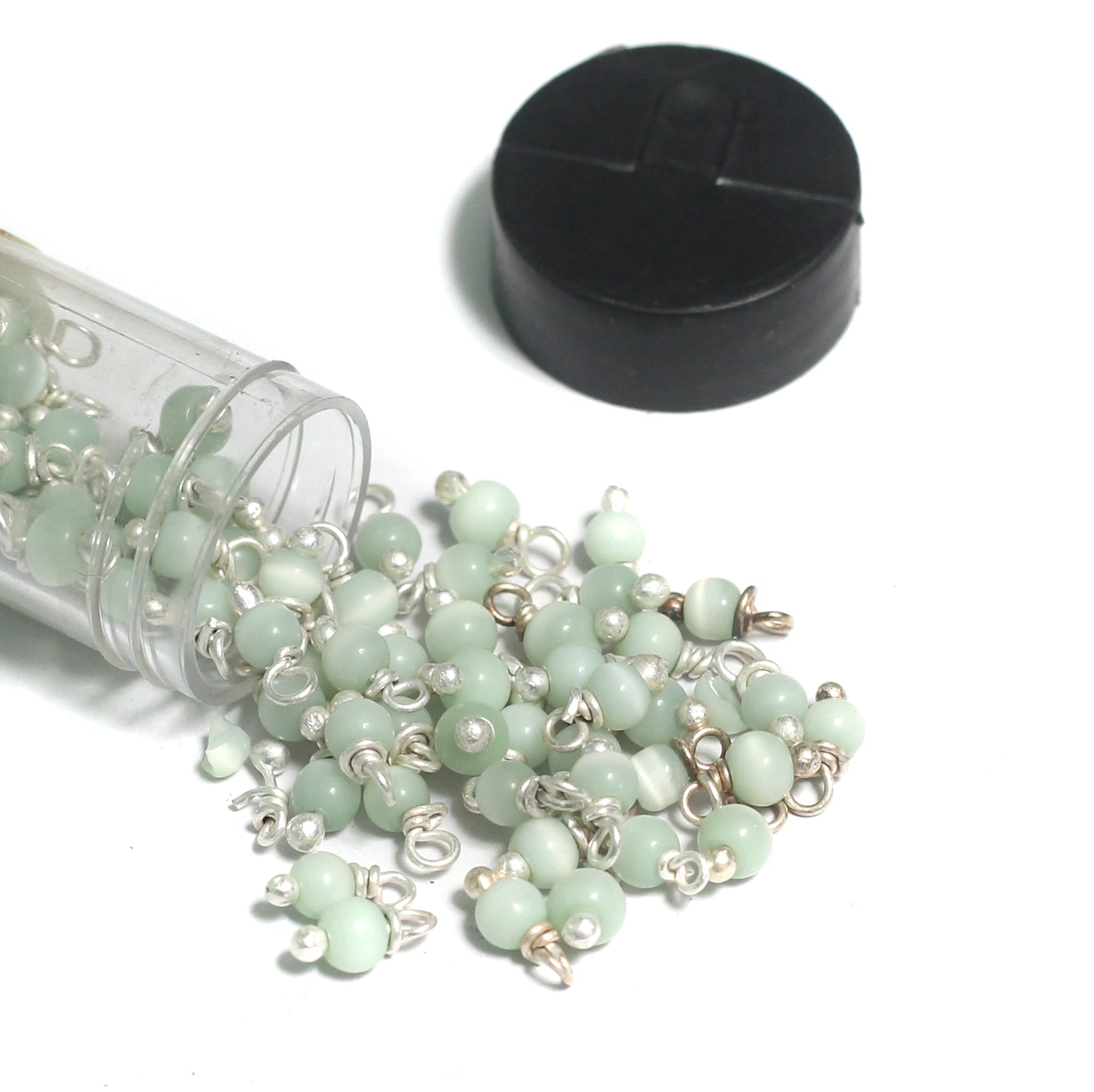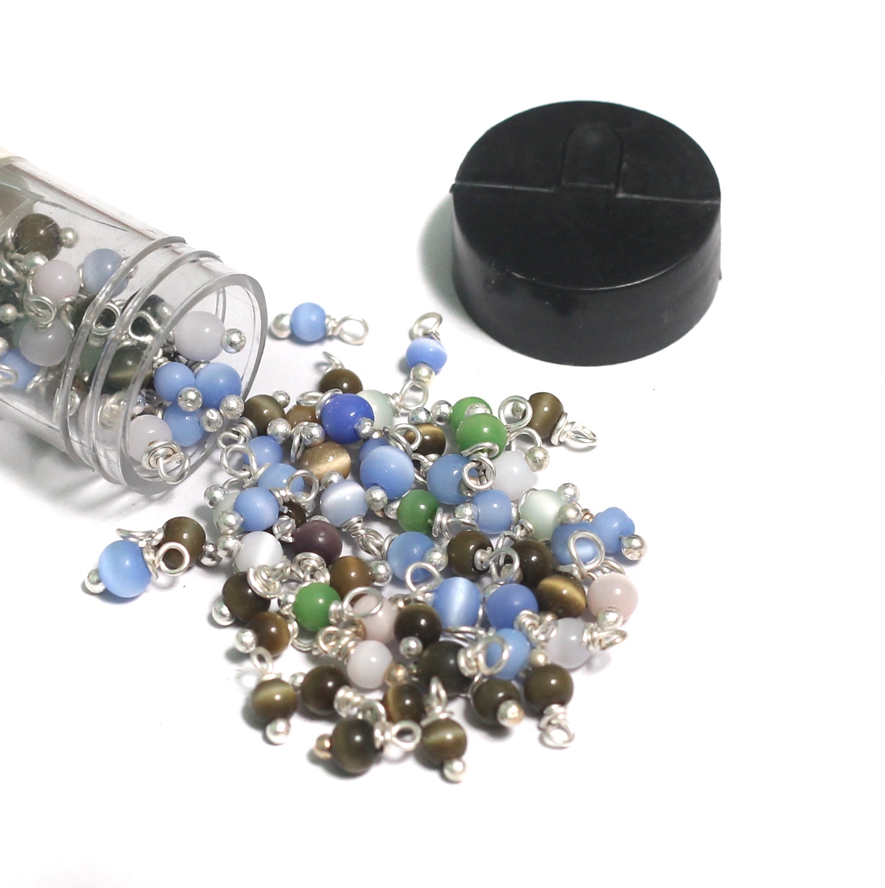 200 Pcs, 4mm Cats Eye Loreal Beads Tube Silver Plated