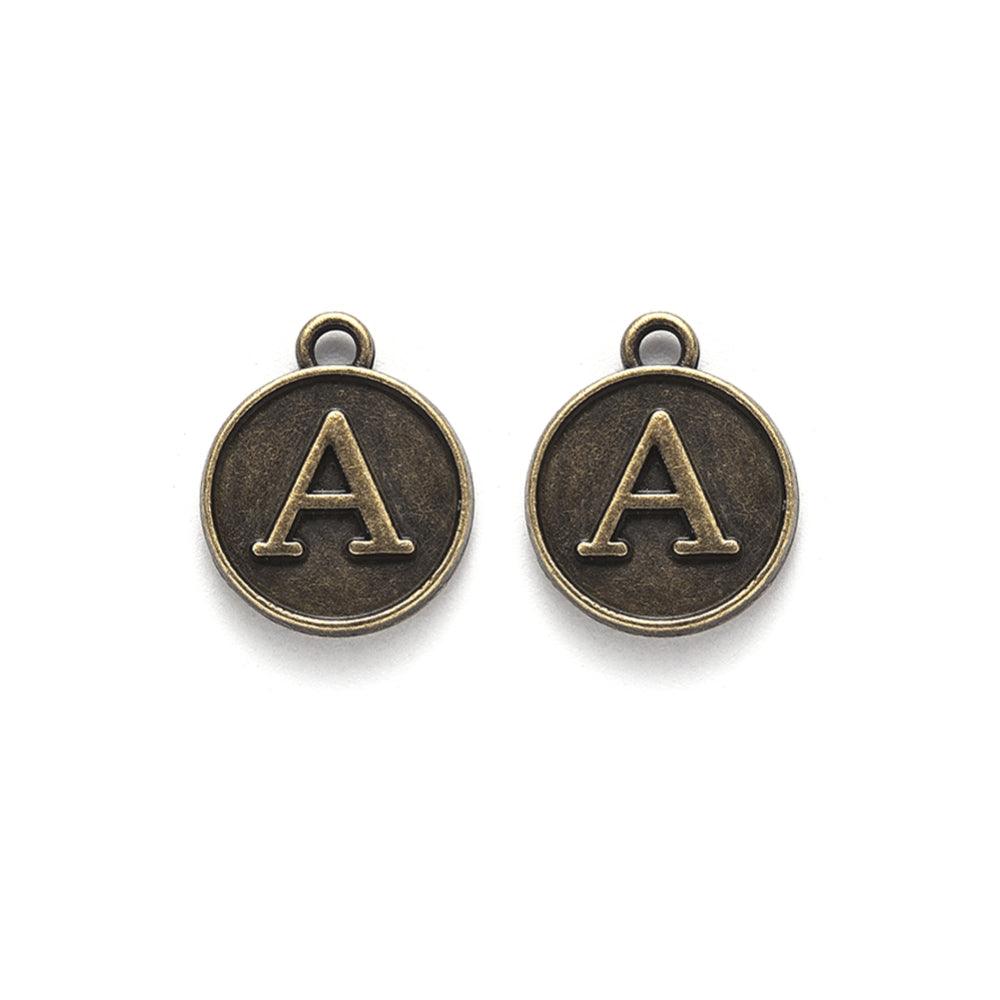 26Pcs, 14x12x2mm, Alloy Pendant Alphabet Charms , Antique Bronze