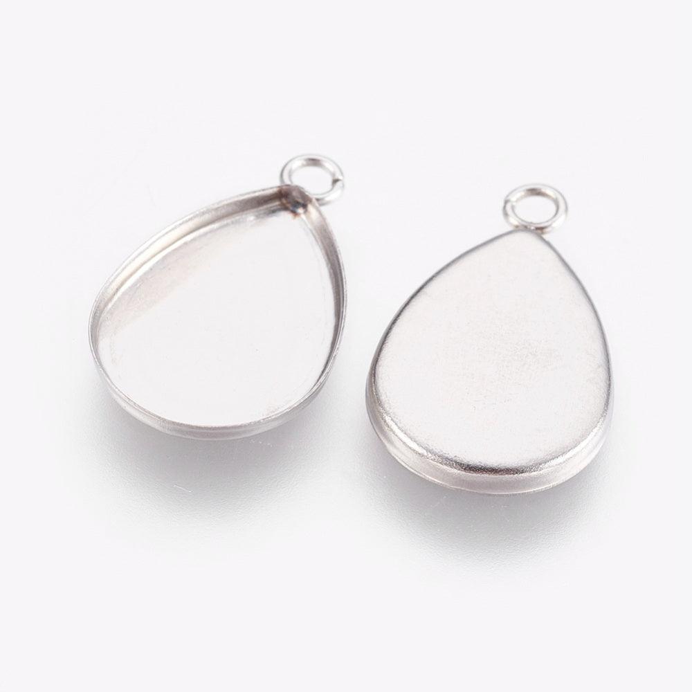 0.75 Inch 304 Stainless Steel Pendant teardrop Cabochon Settings