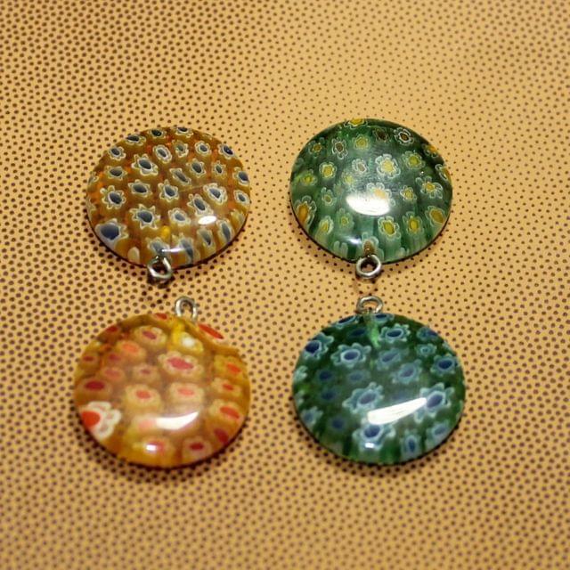 4 Pcs Millefiori Glass Coin Pendants MultiColor 20 mm