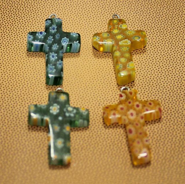 4 Pcs Millefiori Glass Cross Pendants MultiColor 28x20mm