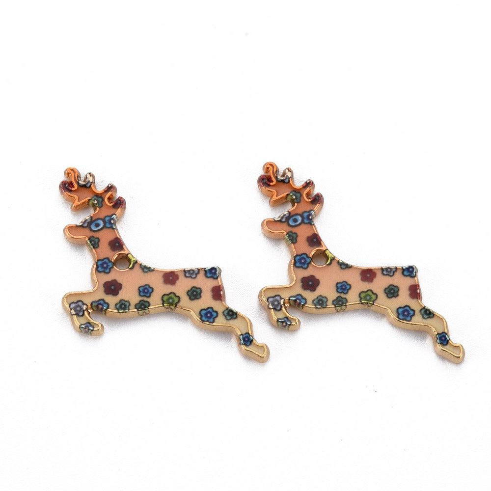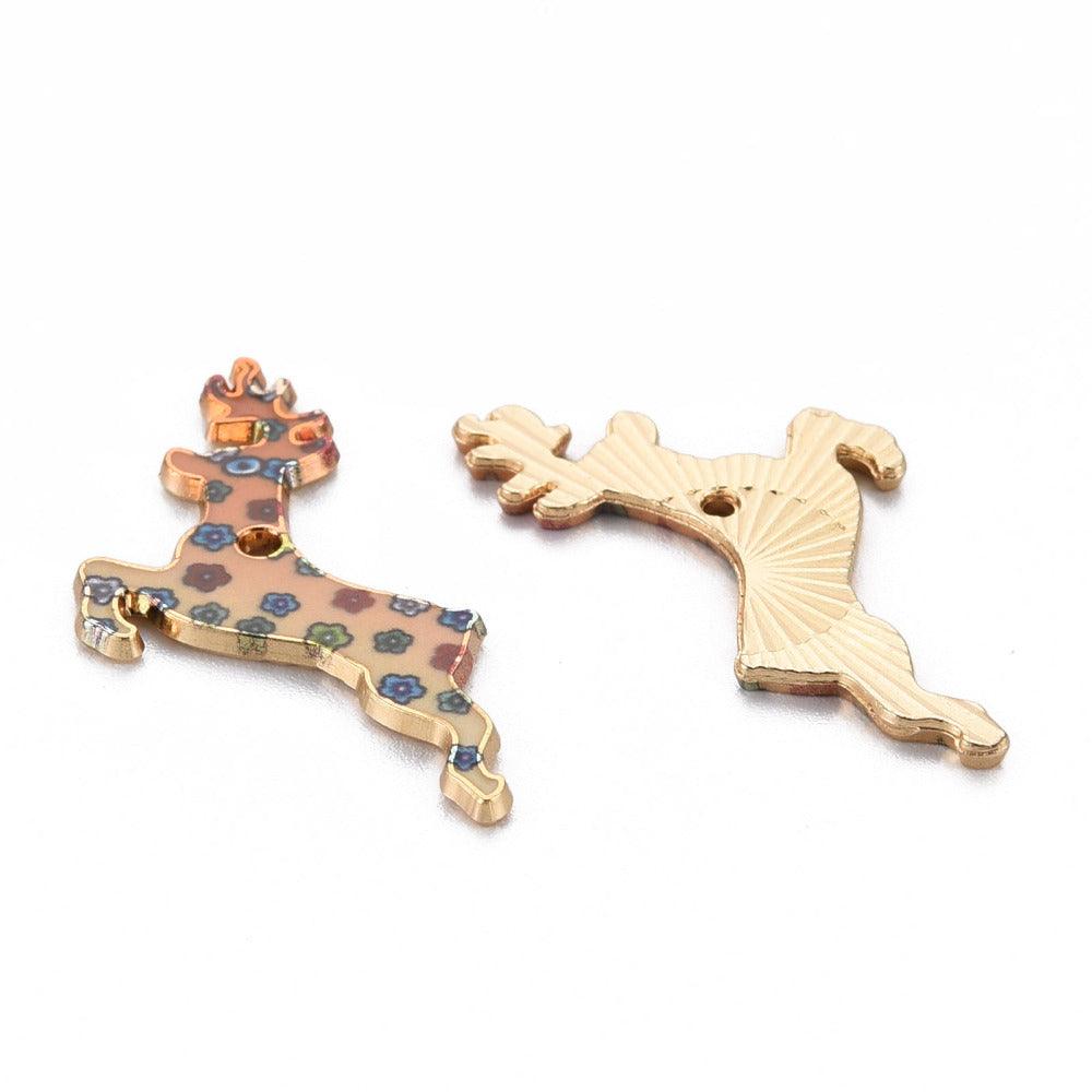 5 Pcs, 19x28mm, Alloy Enamel Charms, Light Gold Deer