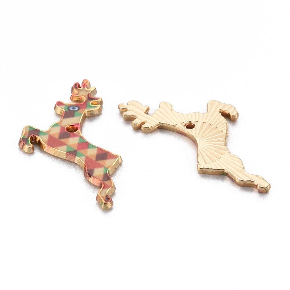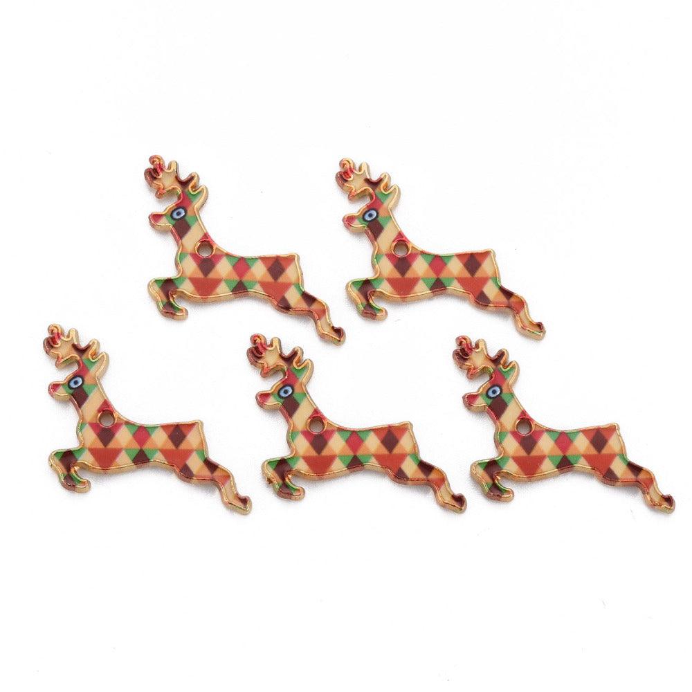 19x28mm, Alloy Enamel Pendants Light Gold Deer Brown