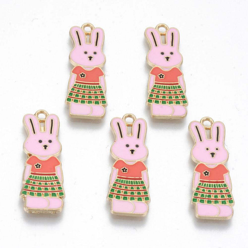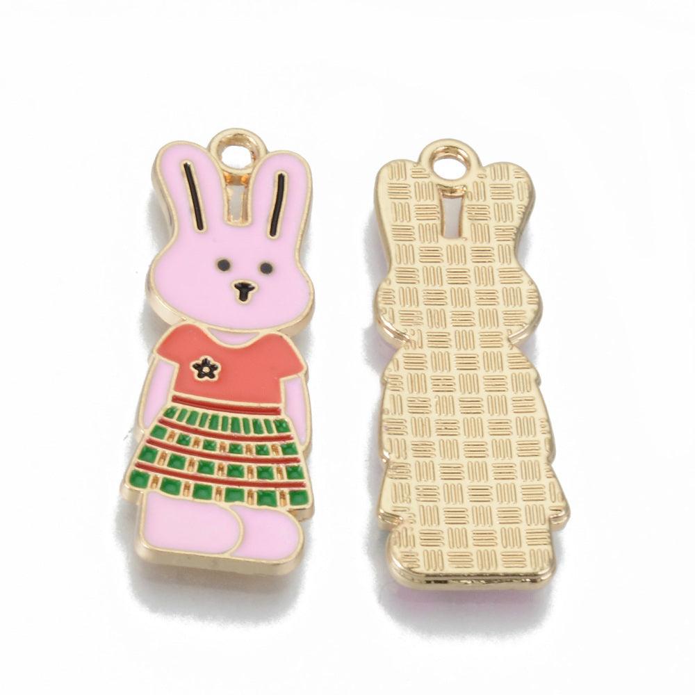 31.5x11mm, Alloy Enamel Charms Rabbit, Light Gold, Colorful
