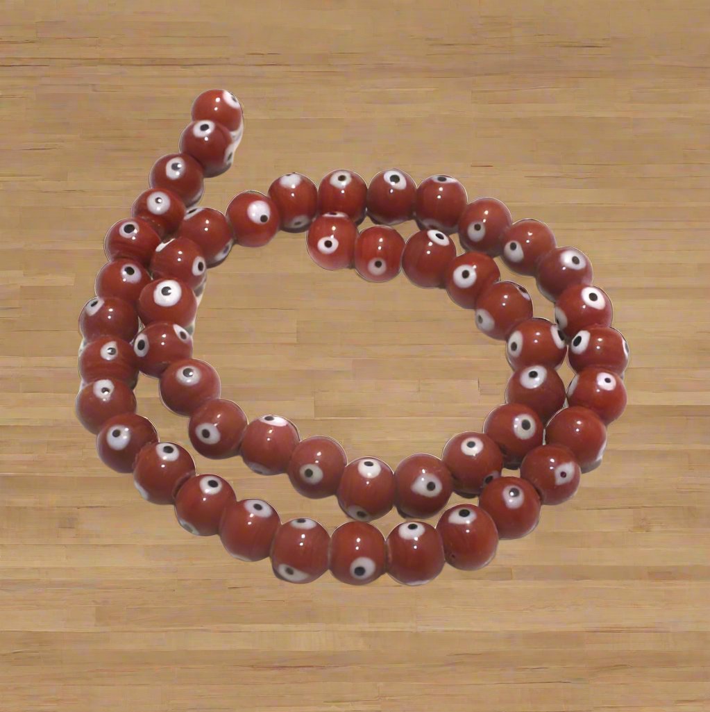1 string of Evil Eye Glass Round Beads Red 8mm