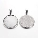 1.5 Inch Tibetan Alloy Pendant Flat Round Antique Silver Cabochon Settings