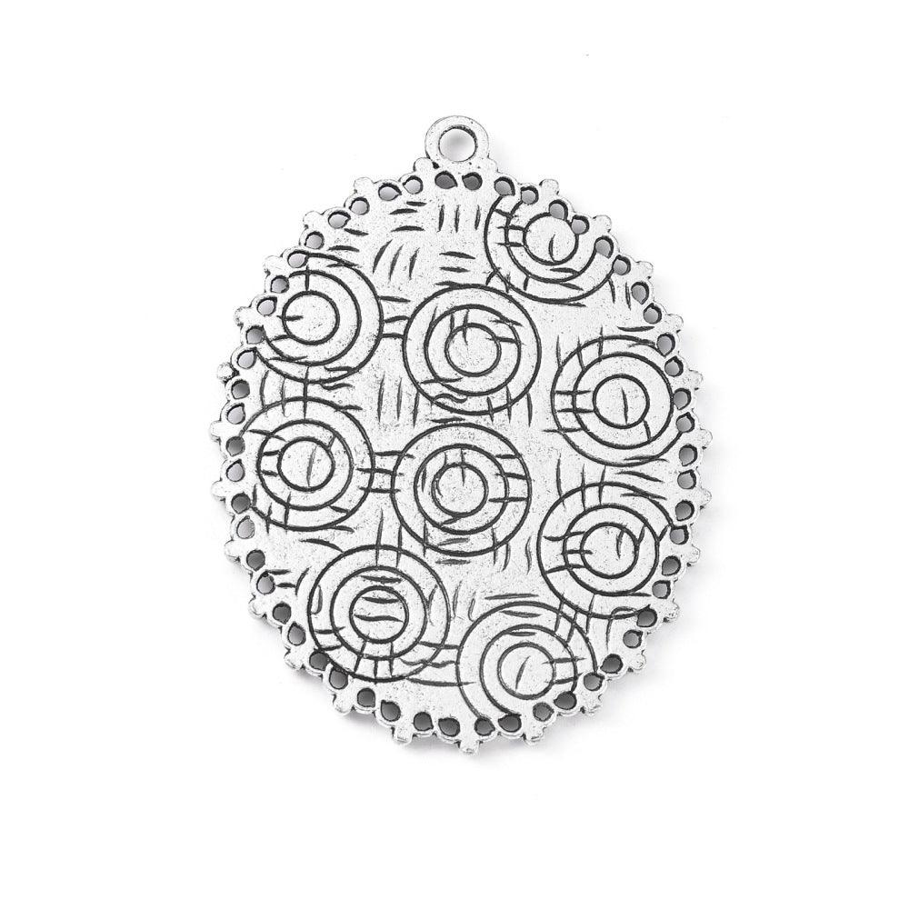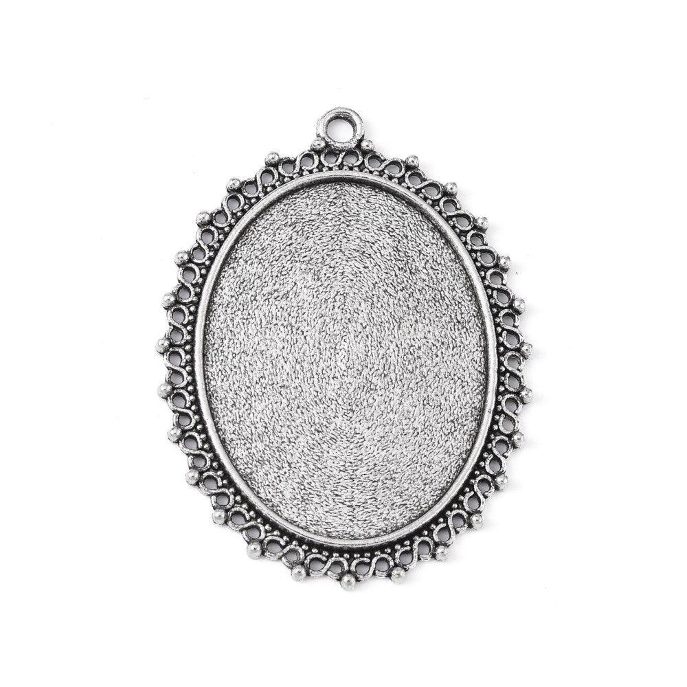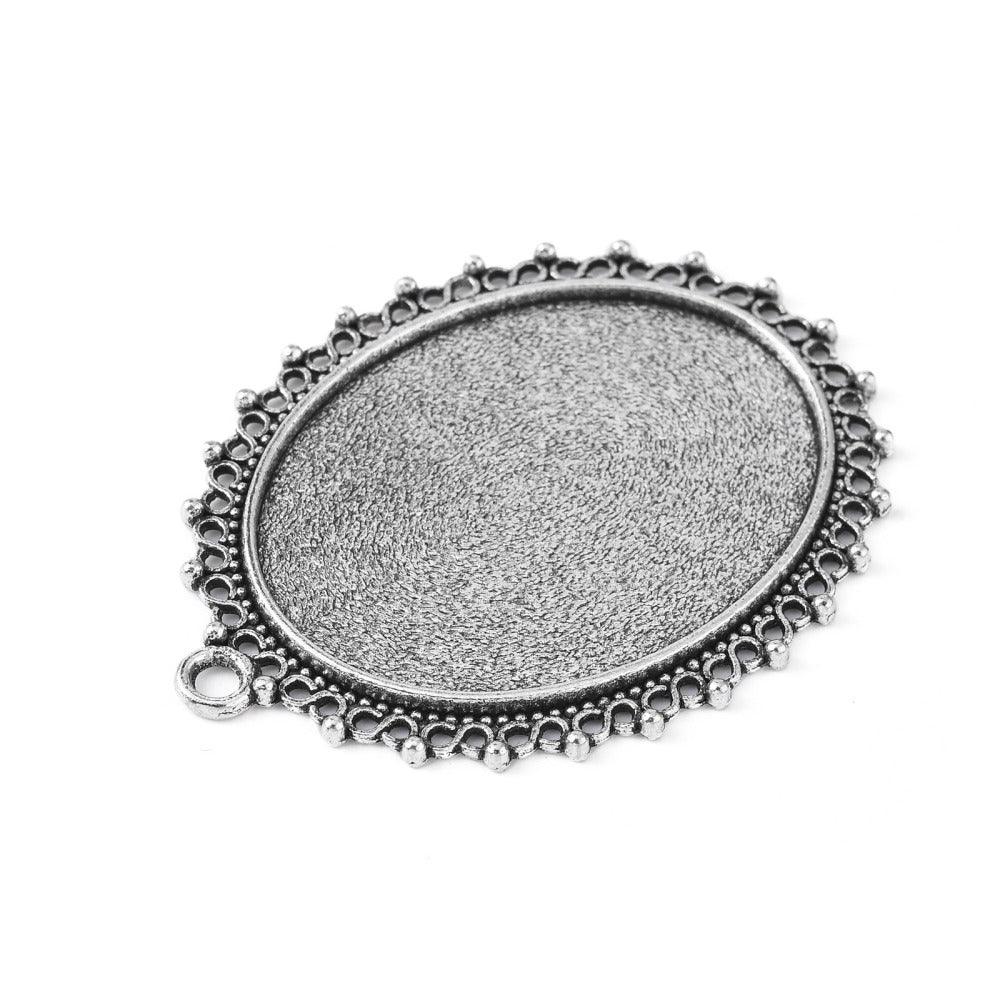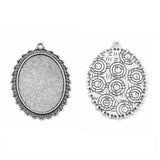 2 Inch Tibetan Style Alloy Oval Tray Cabochon Settings Antique Silver