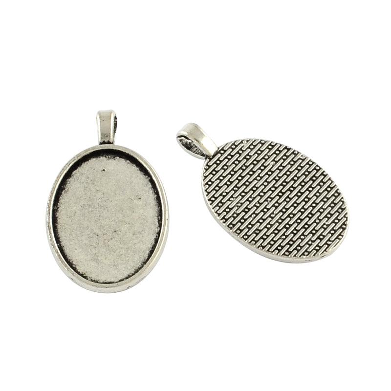 1.5 Inch Tibetan Style Zinc Alloy Oval Pendant Cabochons Settings Antique Silver